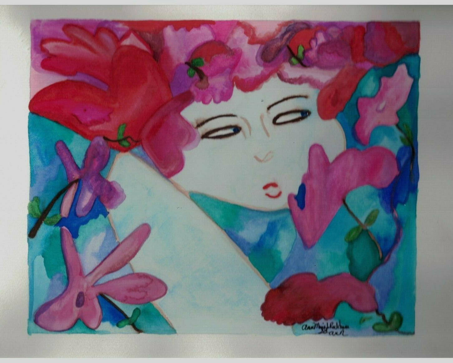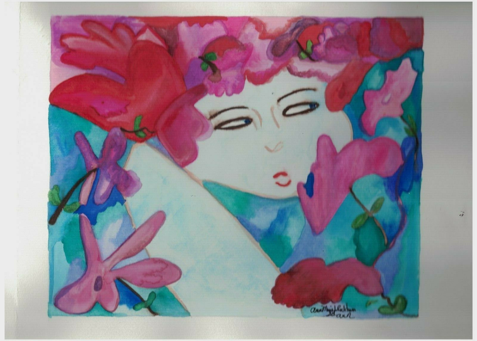 Flower Face/ An original watercolor. By: and 30 similar items