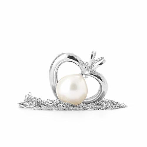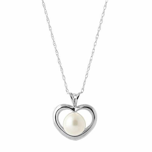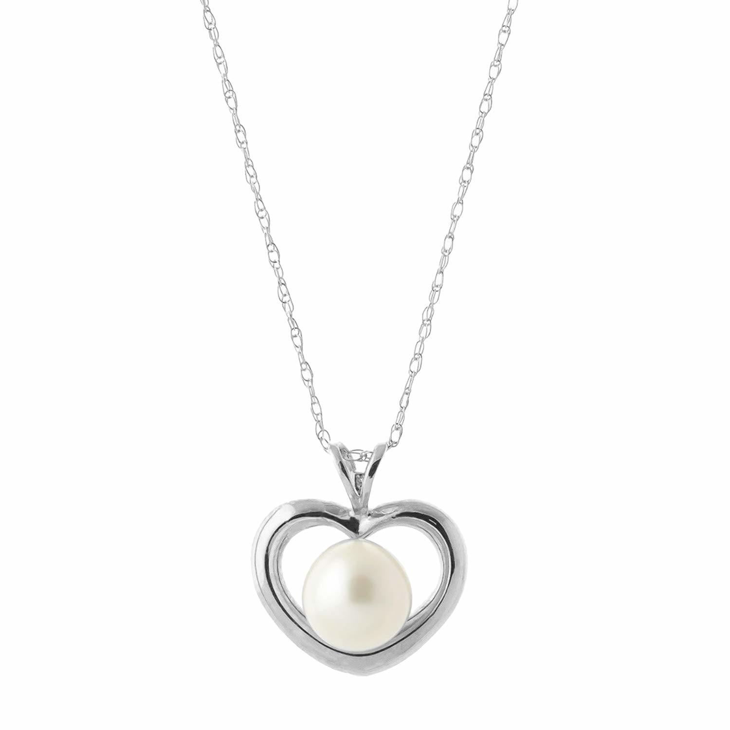 Galaxy Gold GG 14k 18" White Gold Open Heart Design Genuine Pearl Pendant Neckla