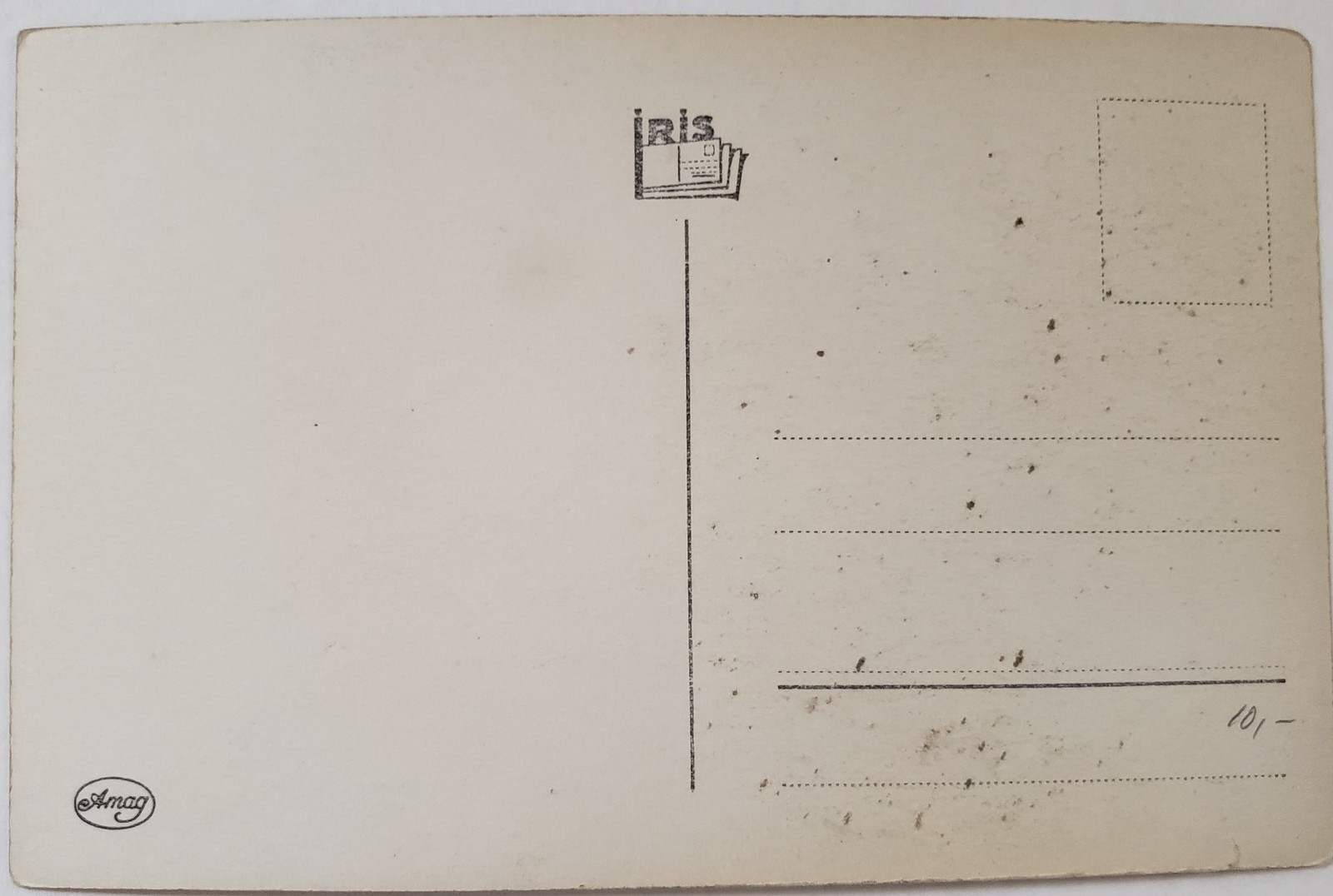 Made in France. Measures approx 5-1/2" x 3-1/2" . Lower right-side edge has a very small tear. Some smudges at back side from storage.
