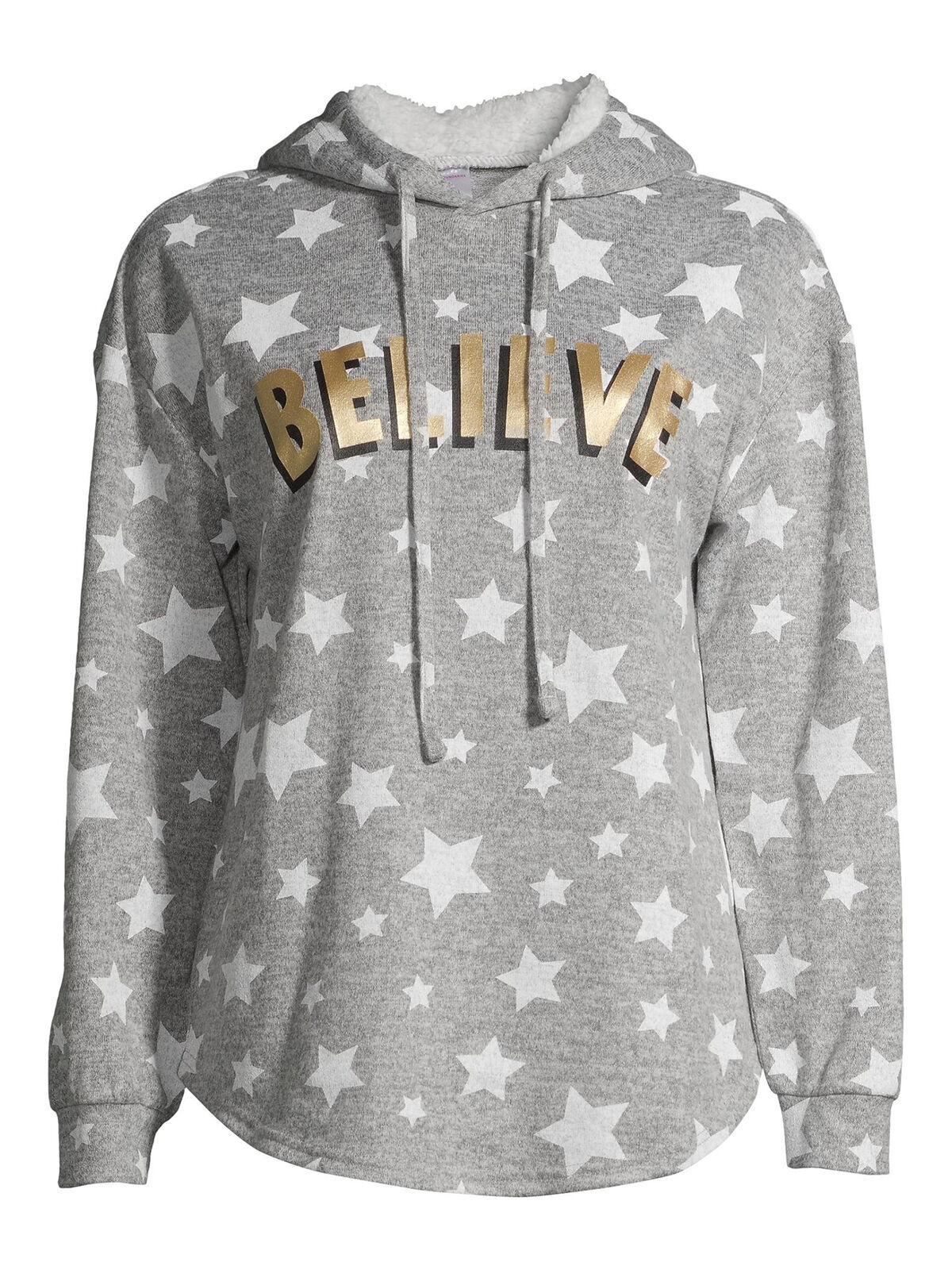 Faux Sherpa Lined Graphic Hoodie for Juniors from No Boundaries