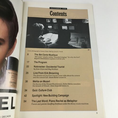 1990 Stagebill New York Philharmonic & Lincoln Center The Bel Canto Mystique