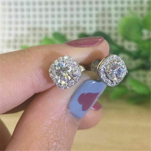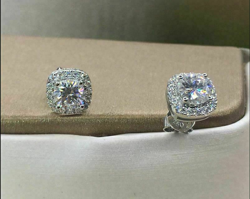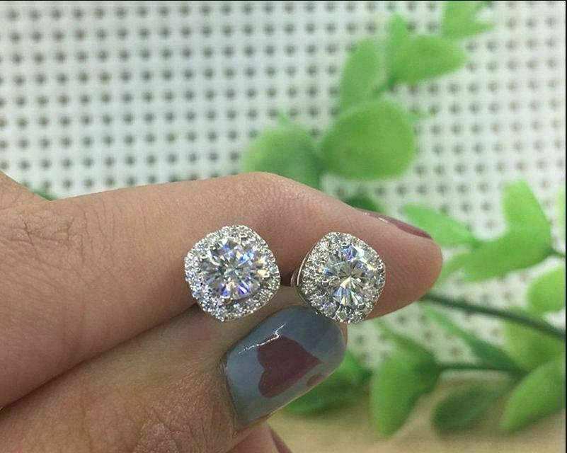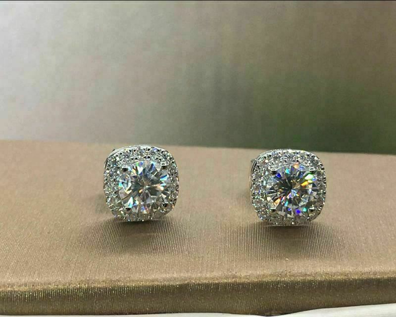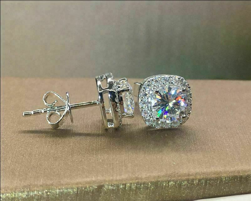4Ct Rund Schliff VVS1/D Diamant Push Hinten Halo Ohrstecker 14K Weißgold Finish