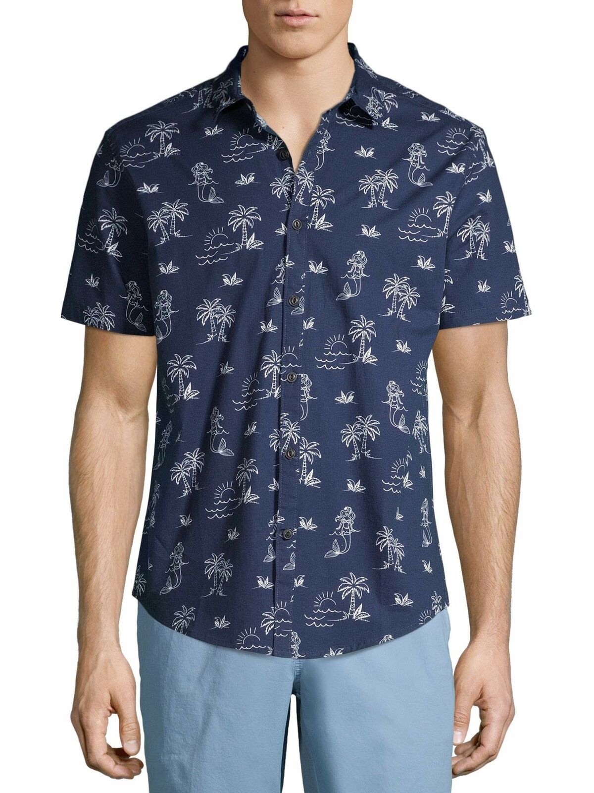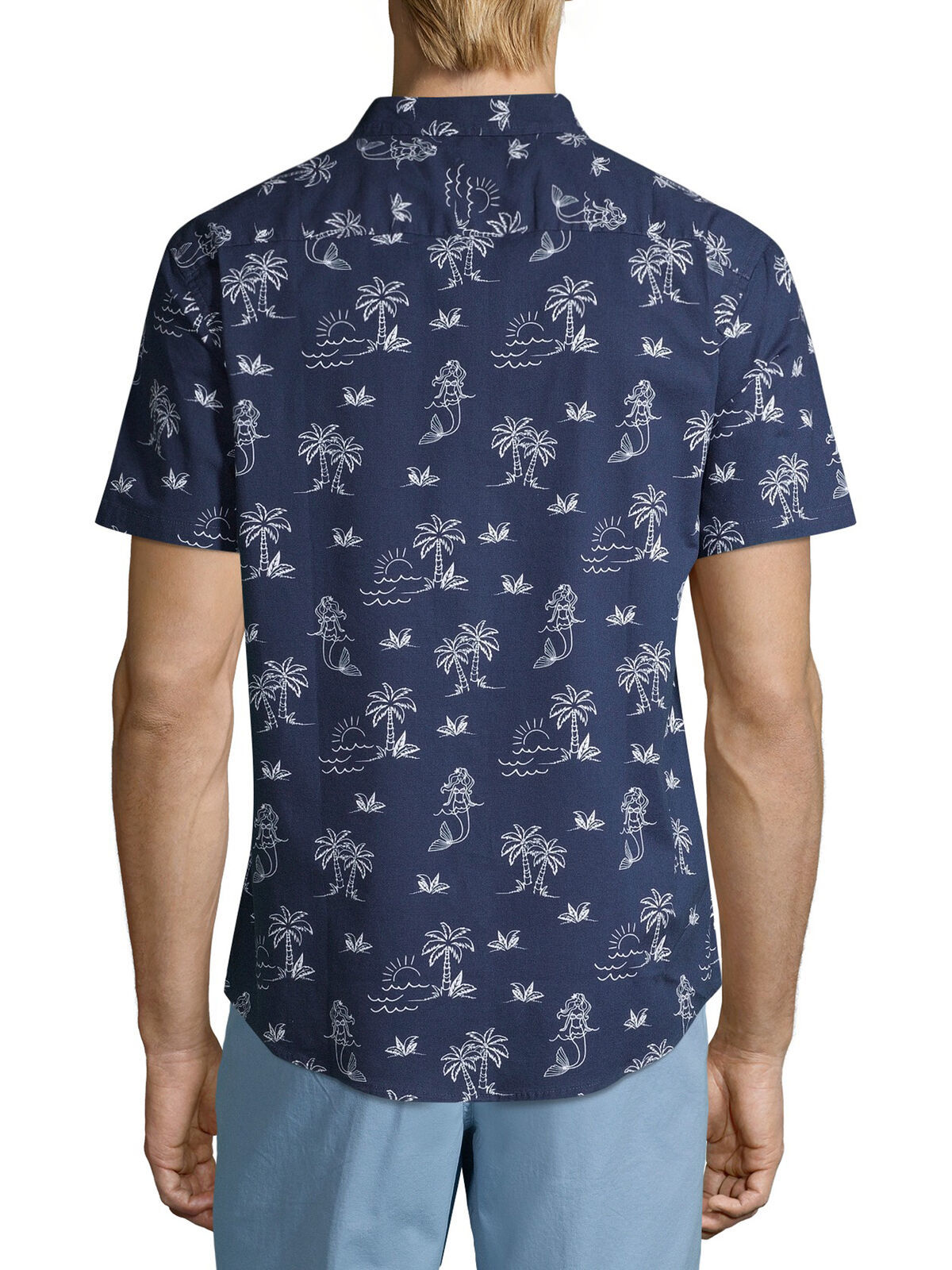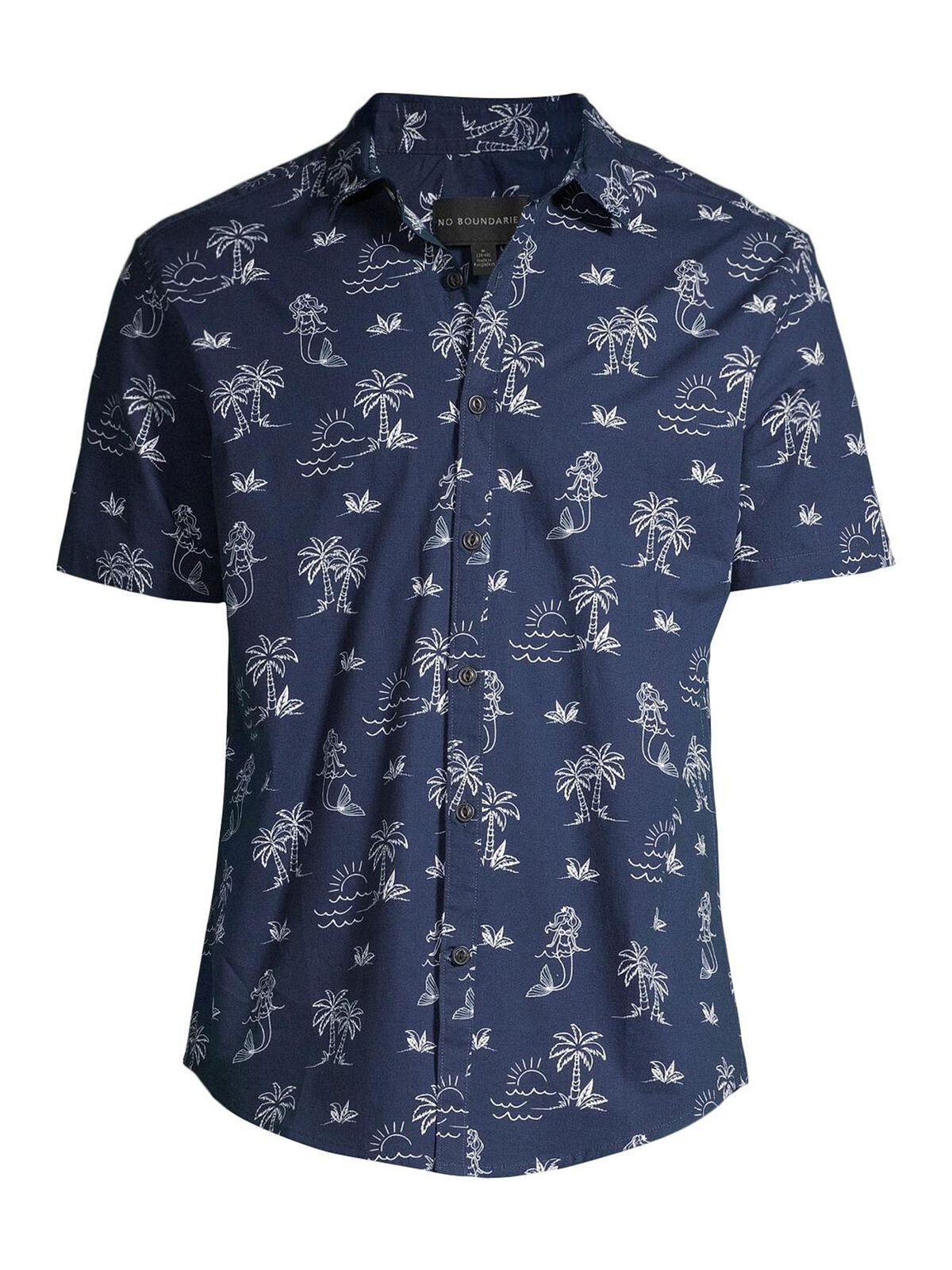 No Boundaries Men's Island Print Short Sleeve Button-up Shirt Size XS/XCH 30-32