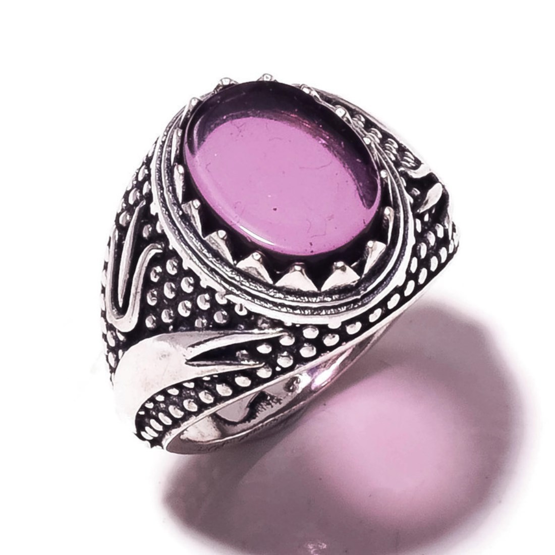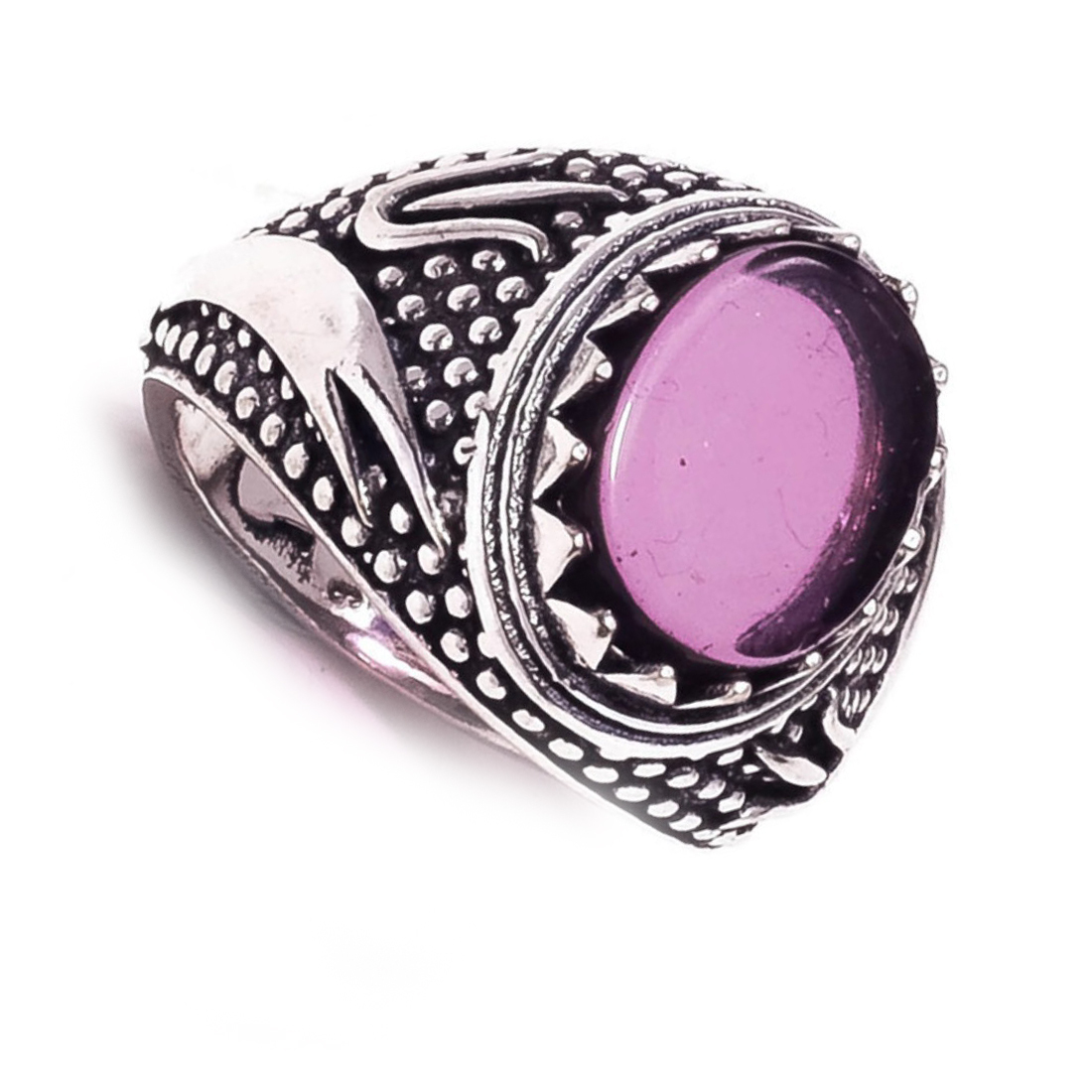 Amethyst Flat Oval Gemstone 925 Silver Overlay Handmade Oxidised Antique Ring US-9.5