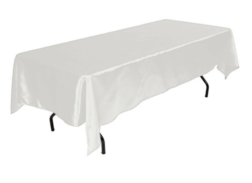 Tektrum 60 X 84 inch Rectangular Silky Satin Tablecloth - Party Banquet (White)