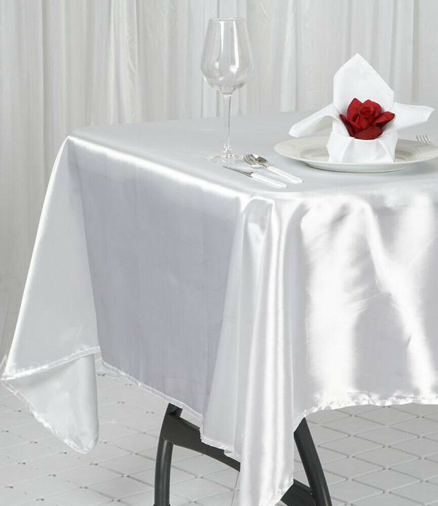 Product Description This smooth silky one-piece design satin tablecloth allows you to create a fine event banquet table linen presentation, and an inviting ambiance for your guests. It is smooth to the touch and shimmers in candlelight.
