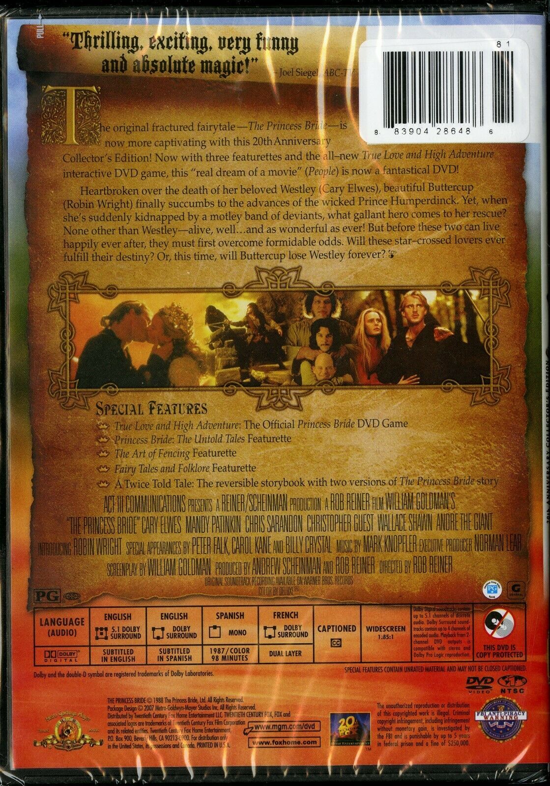 PRINCES BRIDE DVD ROBIN WRIGHT 20TH ANNIVERSARY COLLECTOR'S ED MGM VIDEO NEW