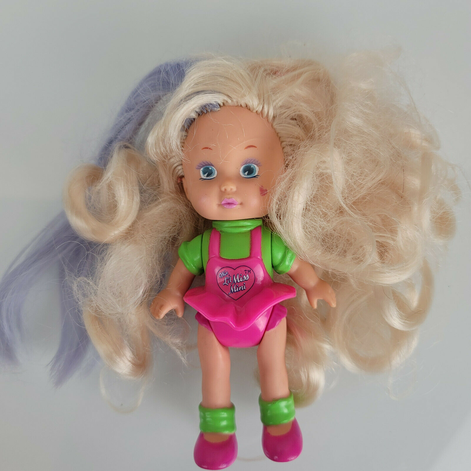 Vintage 1992 Mattel Wee Lil Miss Mini Doll-4.5"-Collectible-Colored Hair-Blue