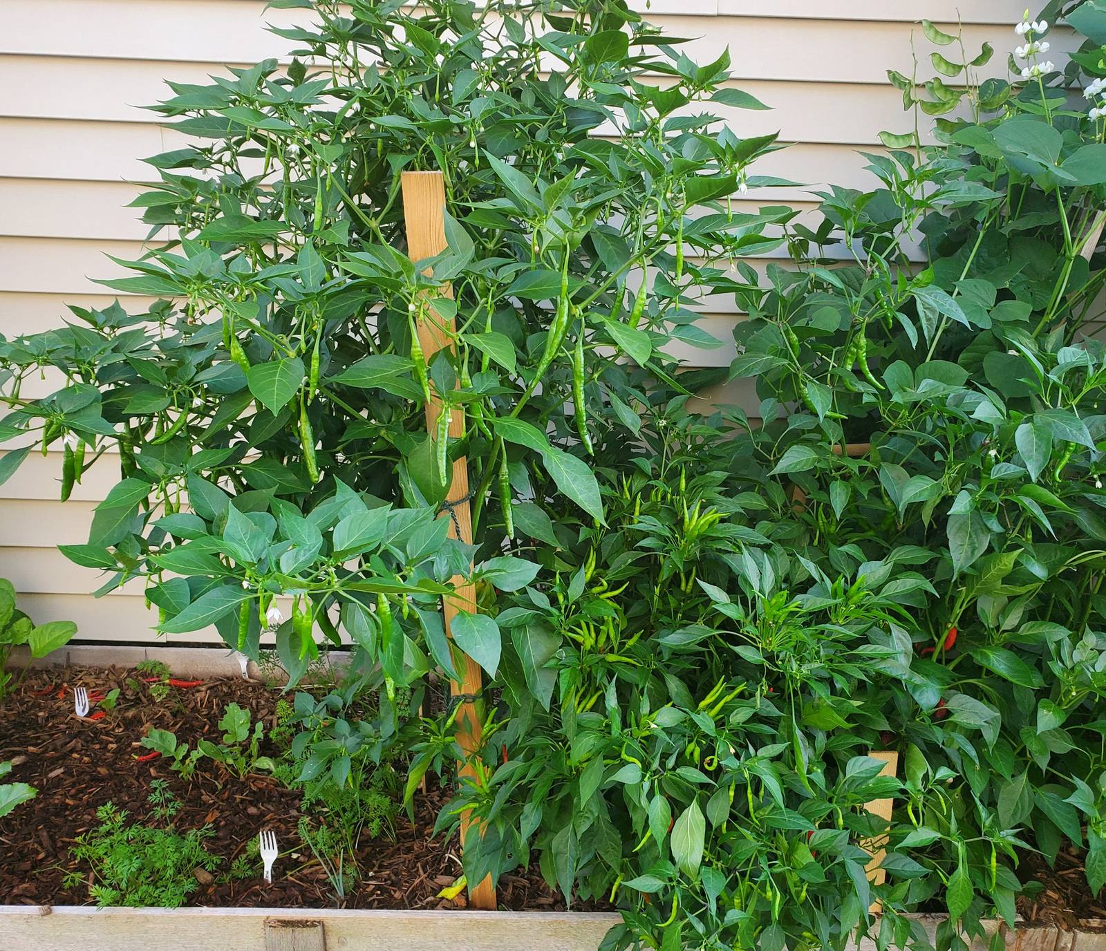 These plants love fish emulsion, when added once a month they grow really tall and produce crazy amount of super long chillies.