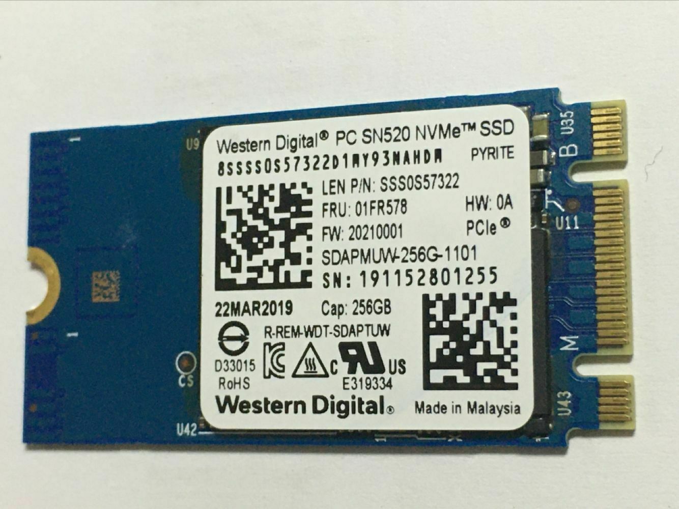 Western Digital SSD SDAPMUW-256G-1101 256GB M.2 2242 PC SN520 NVMe PCIe SSD FW:20210001