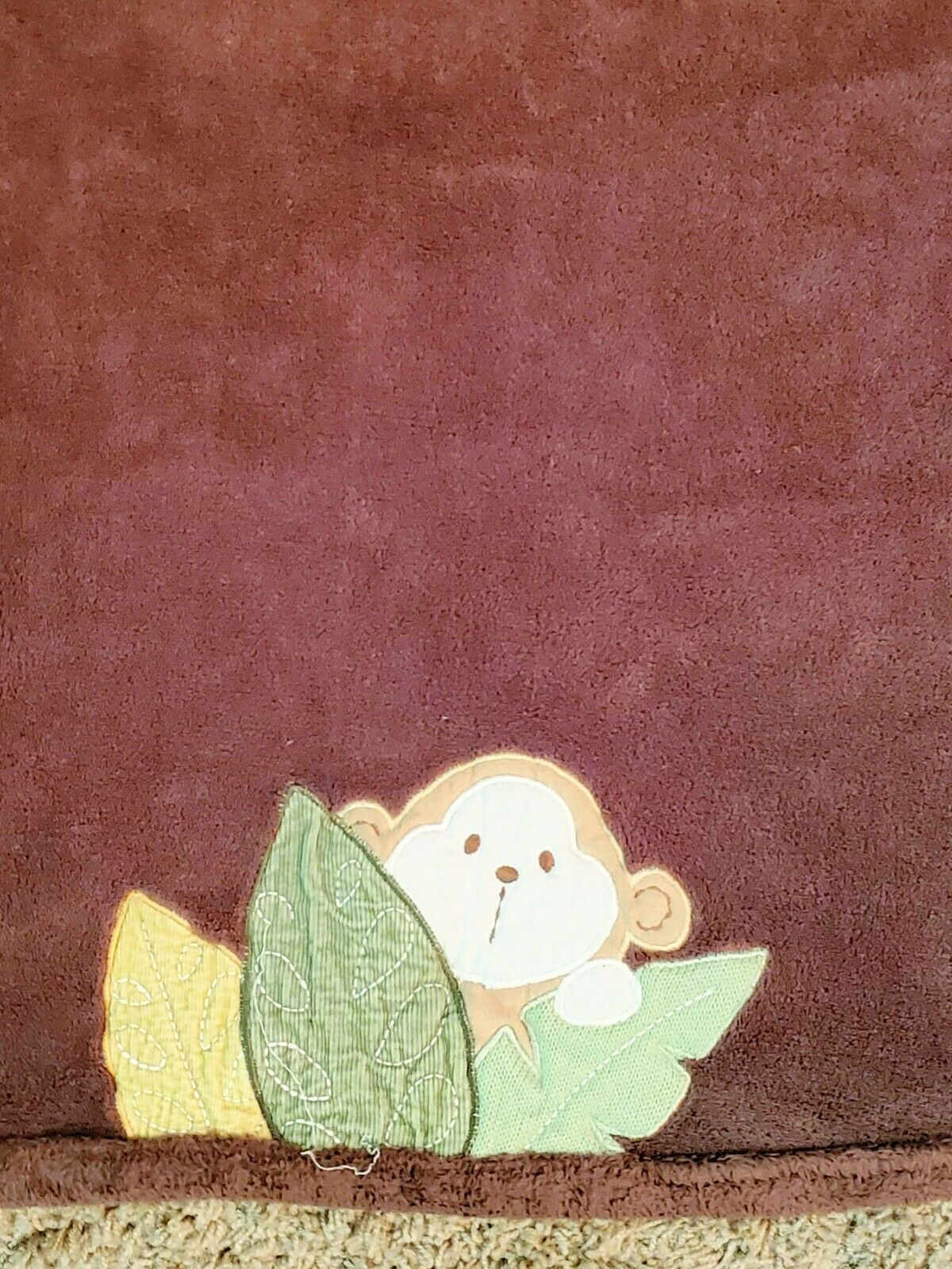 Carters Brown Monkey Green Palm Leaf Baby Blanket Soft Polyester Fleece Plush