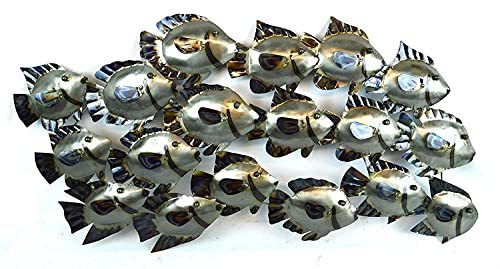 Beautiful Unique Silver Nautical School of Fish Metal Wall Art