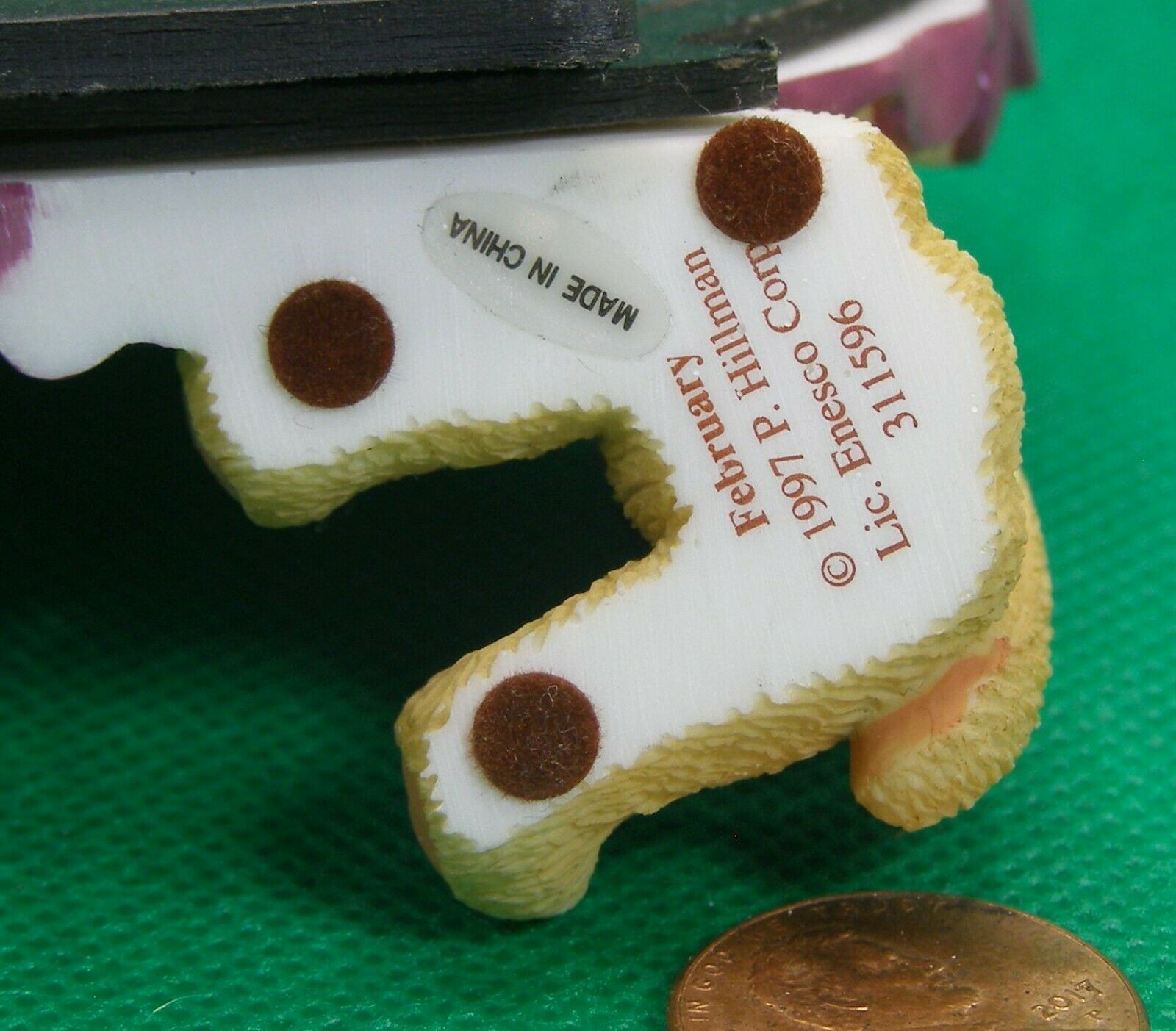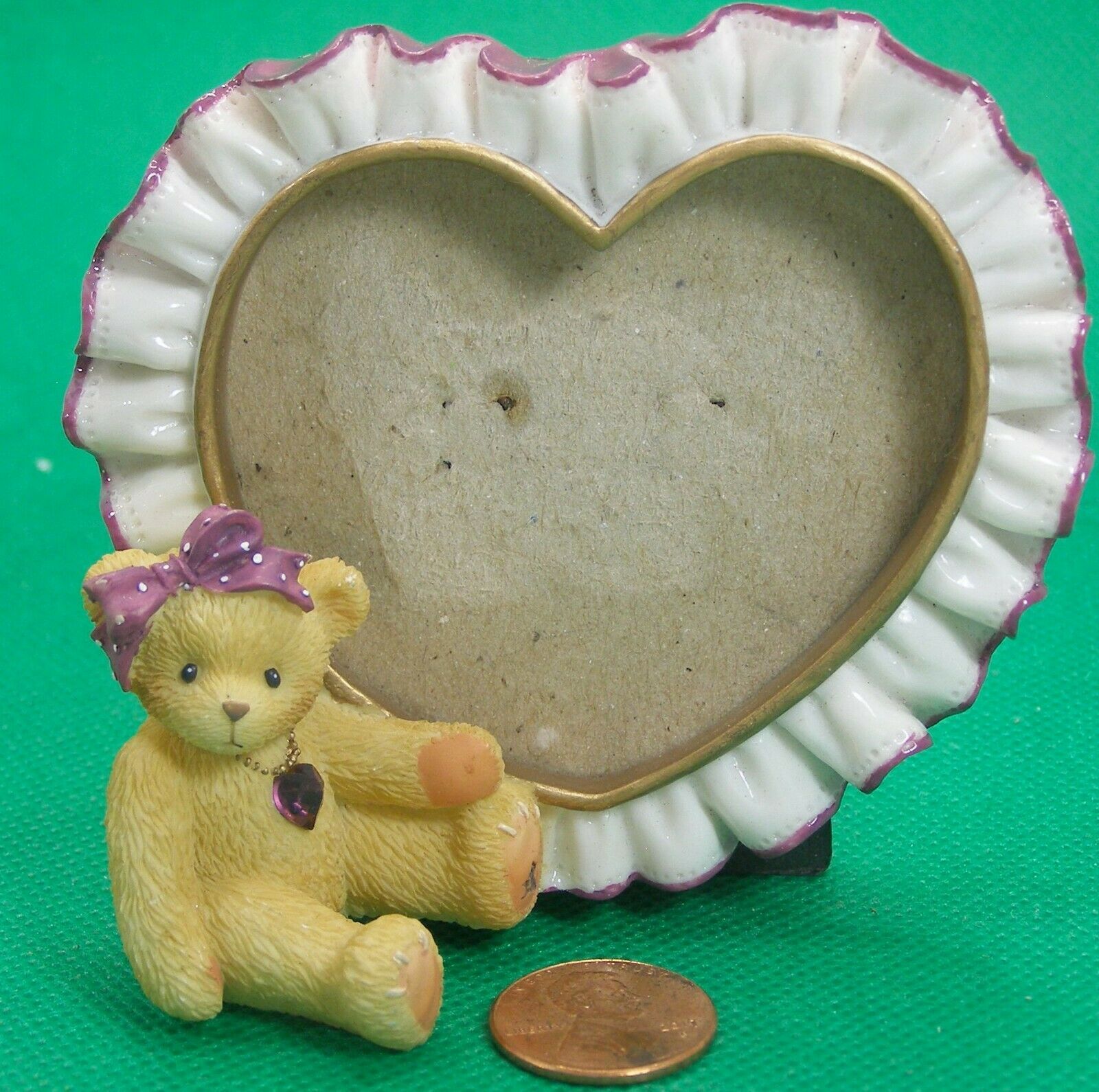Enesco Figurine Cherished Teddies Miniature "February" & Frame 1997 Amethyst