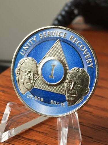Ocean Breeze Blue Nickel Plated AA Alcoholics Anonymous Founders Medallion Chip