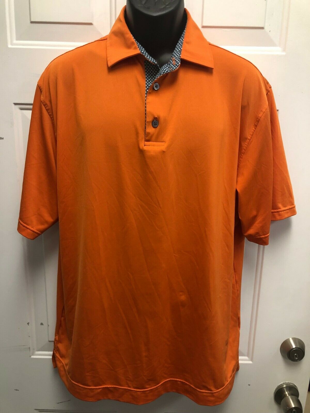 FJ Mens Orange 3 Button Polyester Golf Shirt, Large