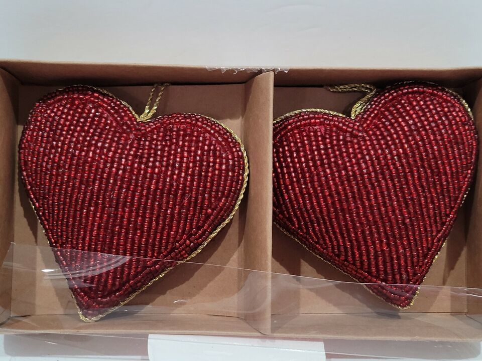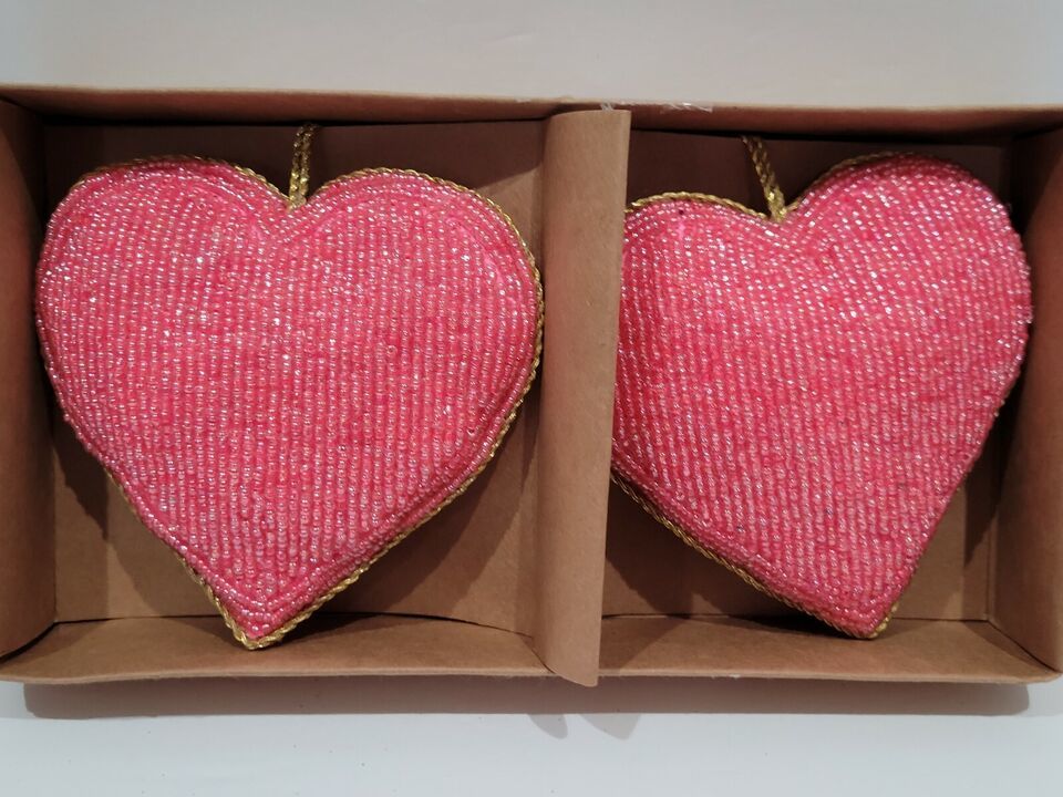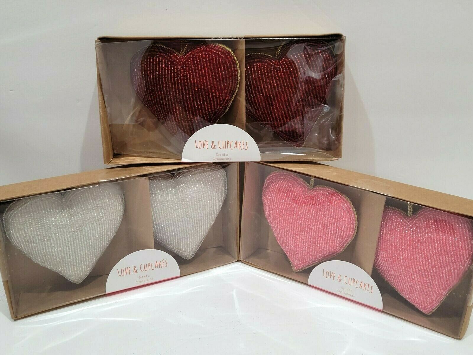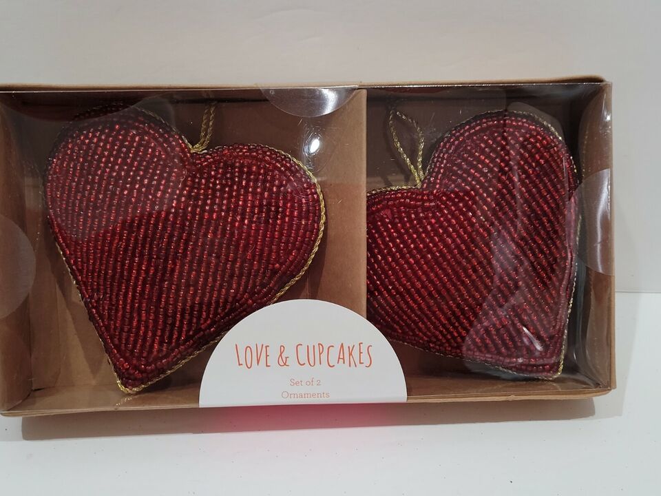 Valentines Love & Cupcakes Beaded 4" Heart Ornaments Set of 2 PICK COLOR