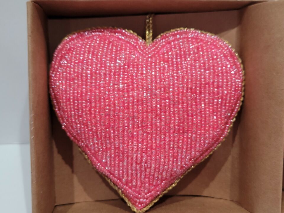 Up for sale we have these adorable beaded hearts by Love Cupcakes. The hearts will look amazing on a tree or wreath. Fully beaded on one side and come with the string for hanging. These measure approx 4" tall x 4.25" wide. Super cute and new. Please select color from the drop down menu.