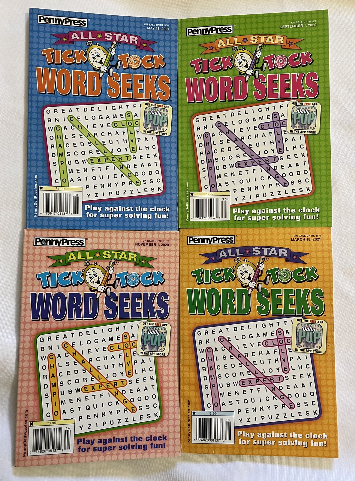 Lot of 4 Penny Press All Star Tick Tock Word Seeks Puzzles Books 2020 2021