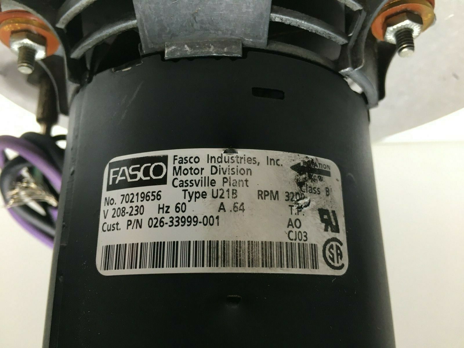 This is FASCO 7021-9656 Draft Inducer Blower Motor Assembly 026-33999-001 Type U21B used motor.