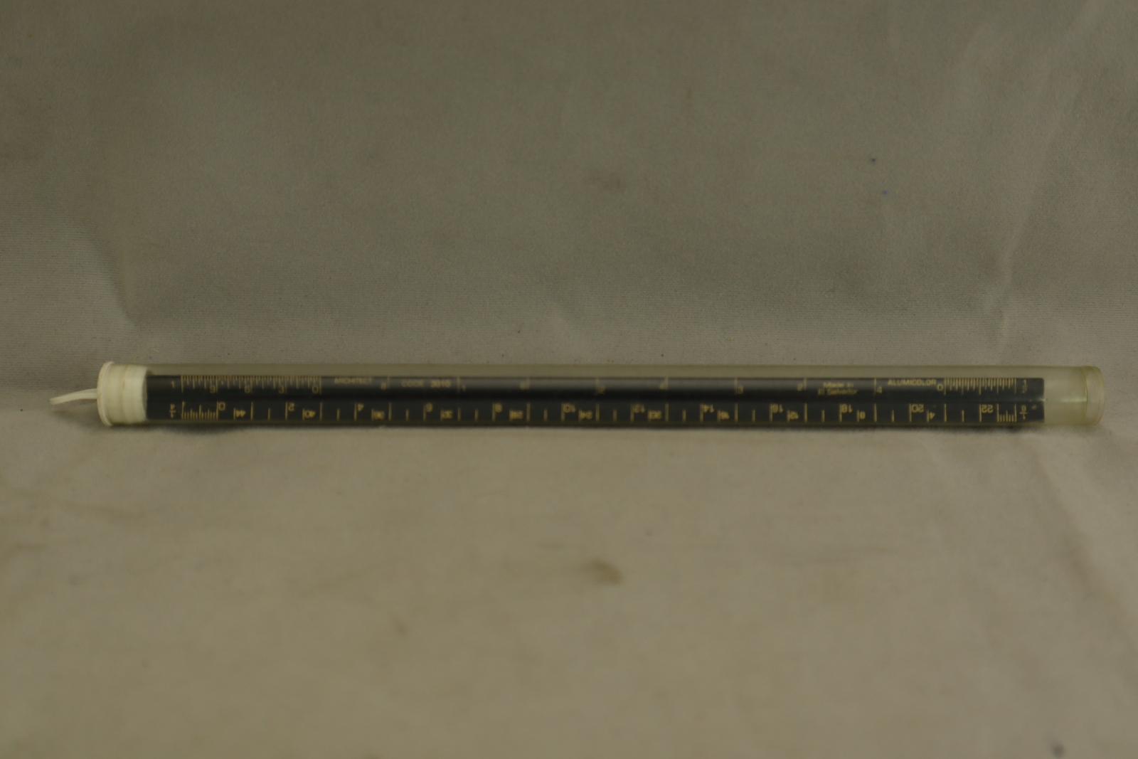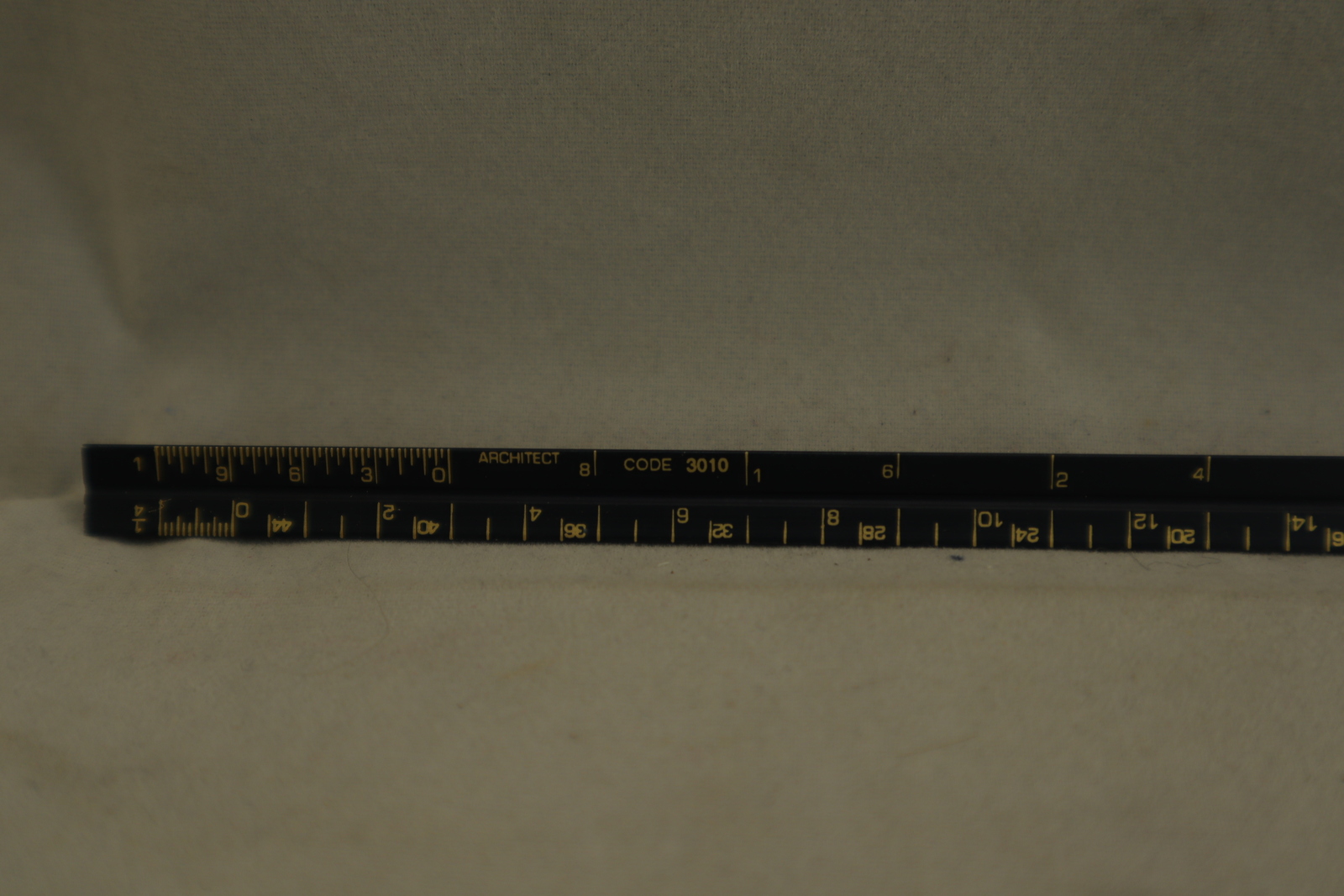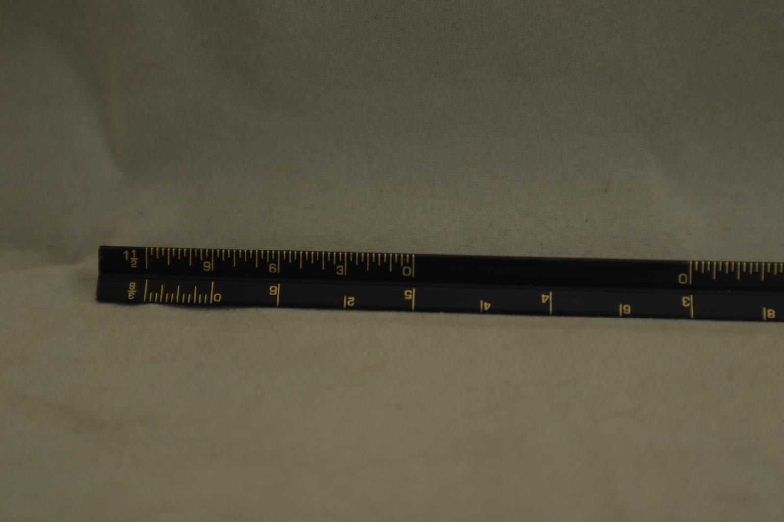 Condition: The ruler is in very good used condition. There are some dings, marks and paint scratches on the ruler from age and use. Overall though, the paint on the ruler is in very nice shape. The case is a bit yellowed and discolored from age but undamaged.