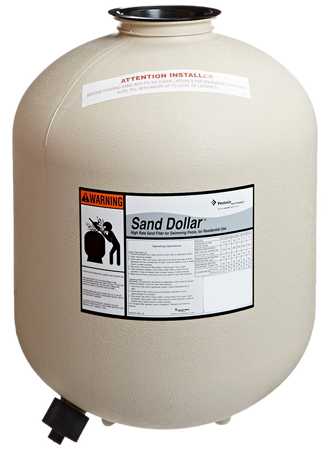 Fits Pentair Sand Dollar aboveground pool and spa sand filter model SD40