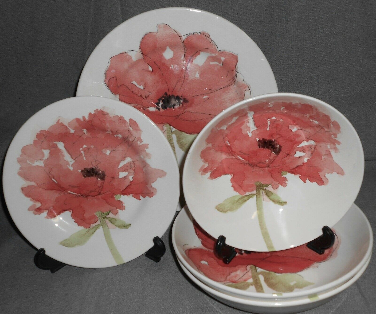 5 pc Set ROYAL STAFFORD Red Poppy Pattern PLATES - BOWLS