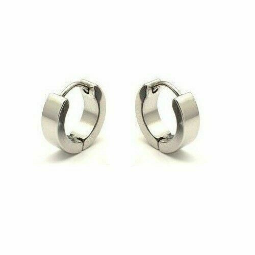 Silver Tone Huggie Hoop Earrings Stainless Steel Men Unisex