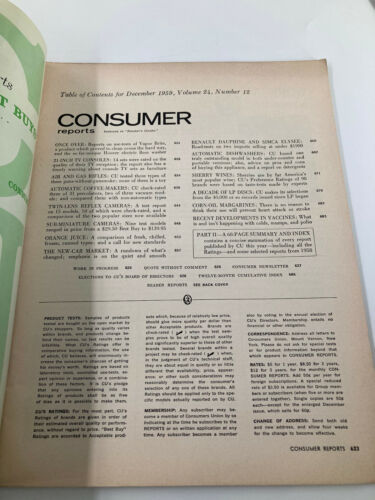 VTG Consumer Reports Magazine December 1959 and 50 similar items
