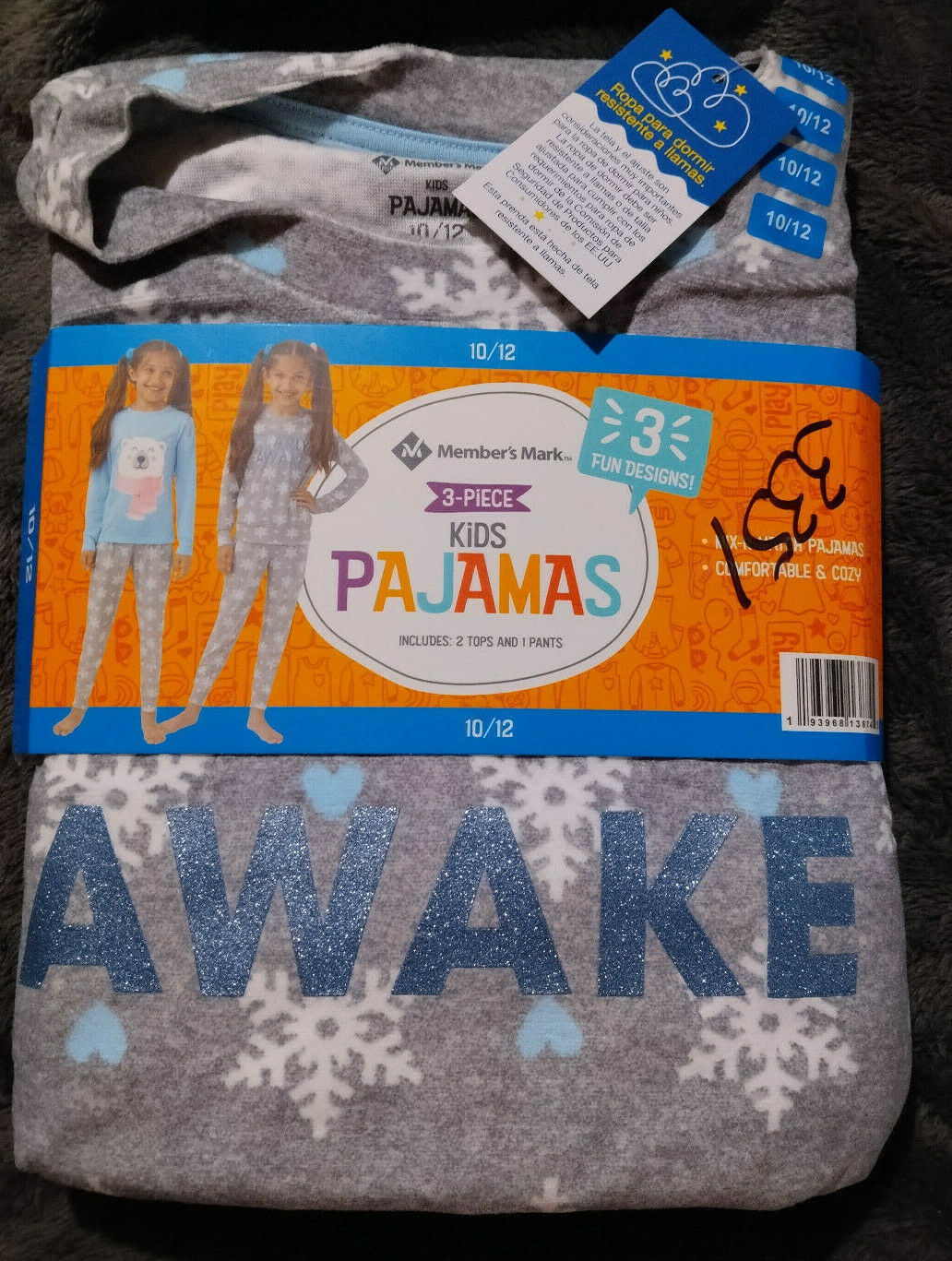 Members Mark Girls 3 Pc Polar Bear Pajama set Sz 10/12 New With Tags