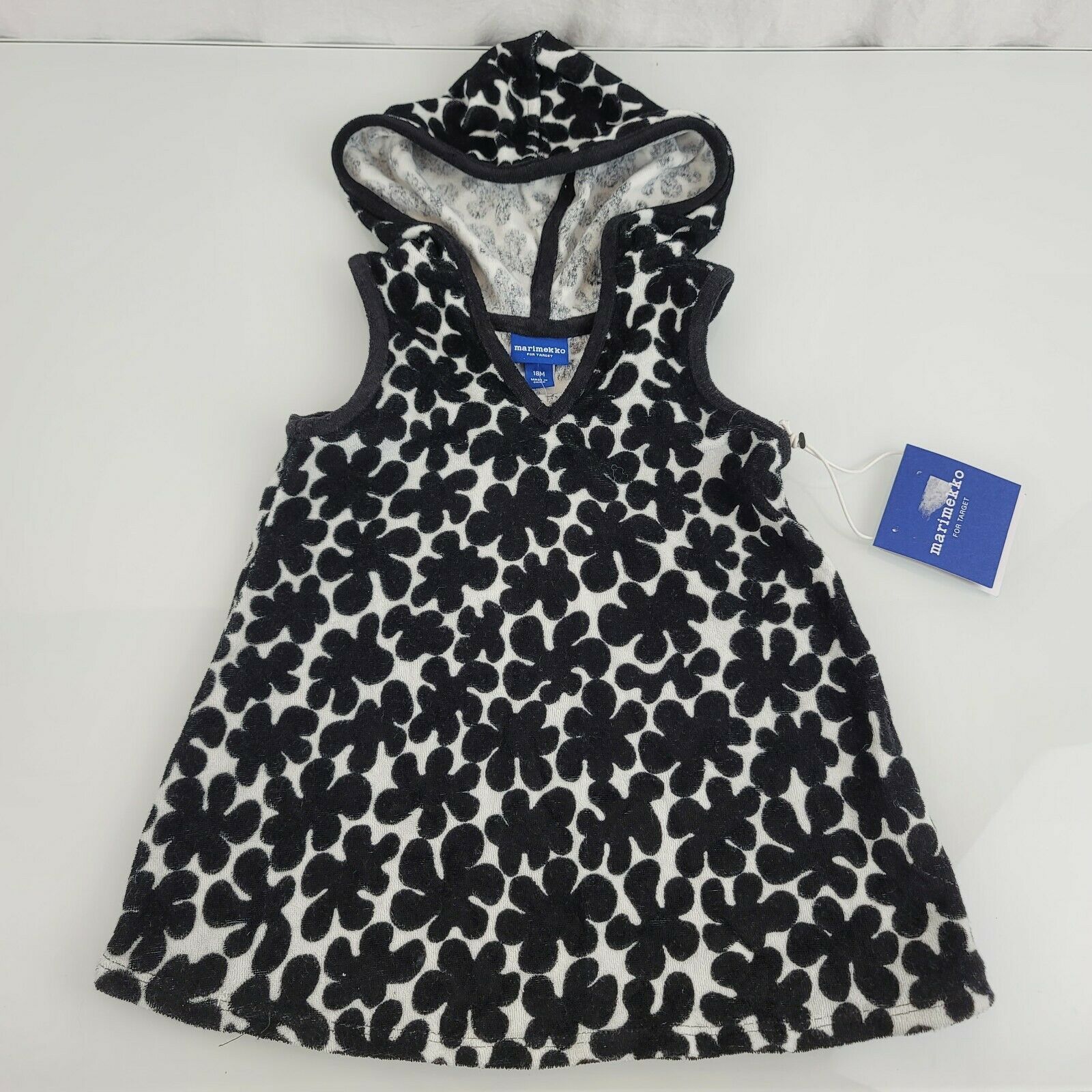 Marimekko x Target Baby Girl Black White Flower Mod Swim Coverup Dress Terry 18m