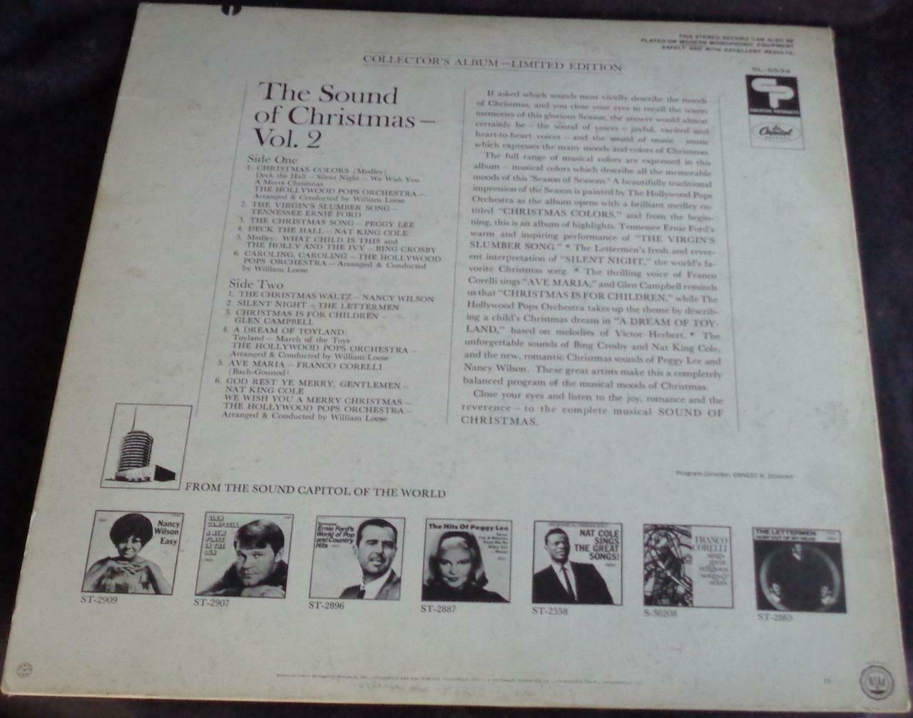 Offered here is this nice vintage Vinyl Record, The Sound Of Christmas, Volume 2. The record is a Capitol Records and plays at 33.3 speed. It is in good condition but does have some light scratches on it. It is an old vinyl record. I do not own a record player, so the record has not been tested. It is a 12” record. It would be a wonderful addition to any vintage vinyl collection. It features the songs;