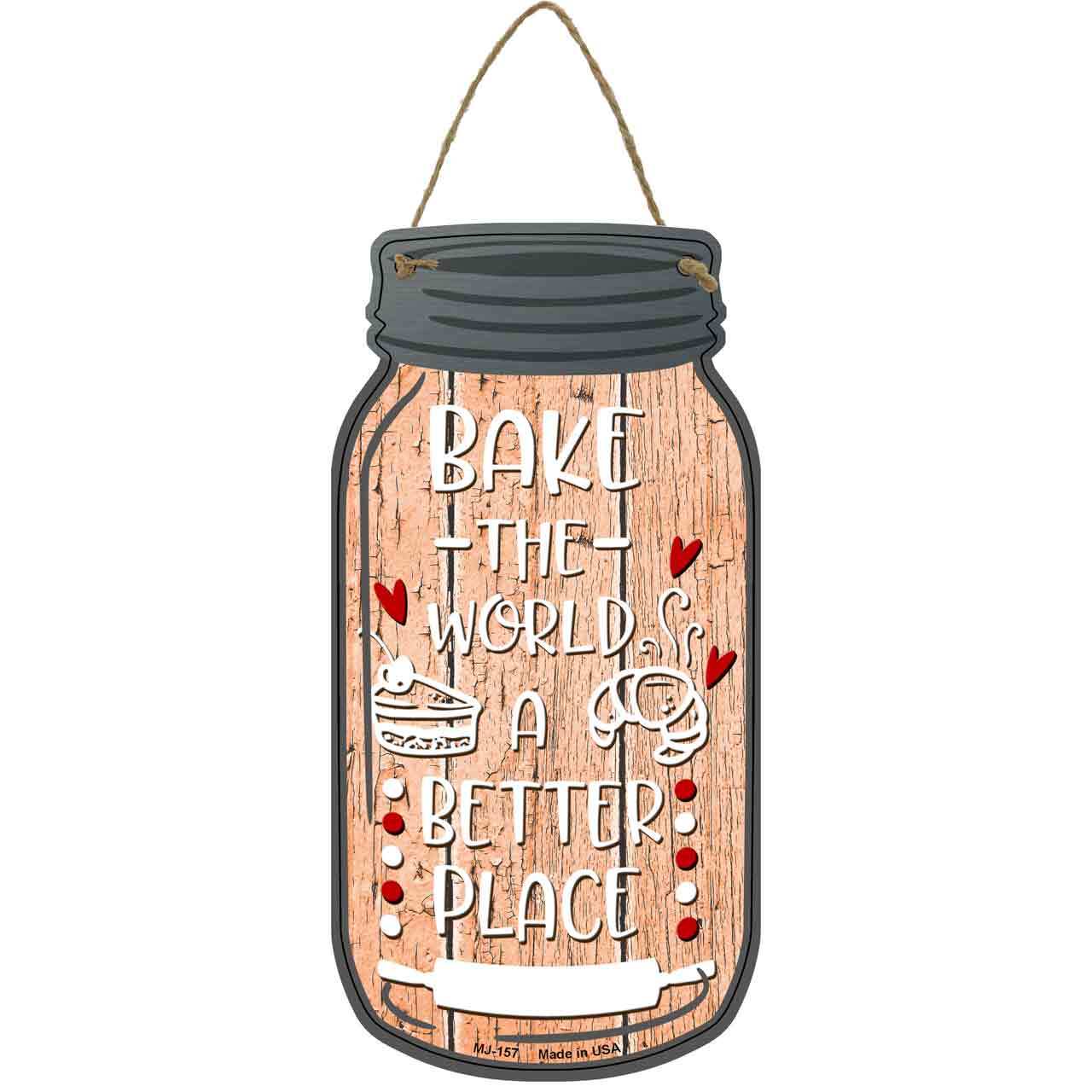 Bake The World Better Place Novelty Metal Mason Jar Sign