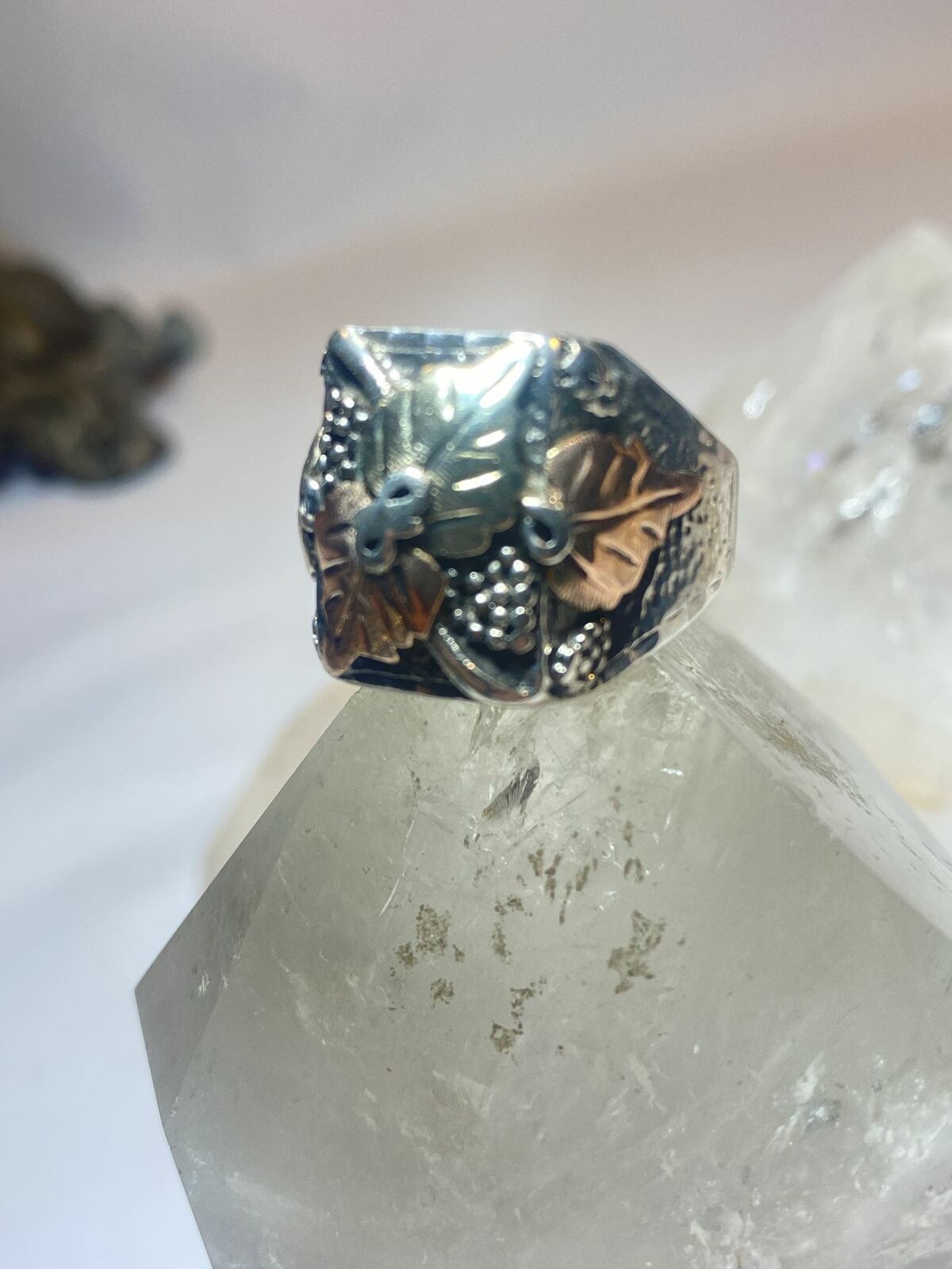 Detailed w 10K on the leaves over sterling silver