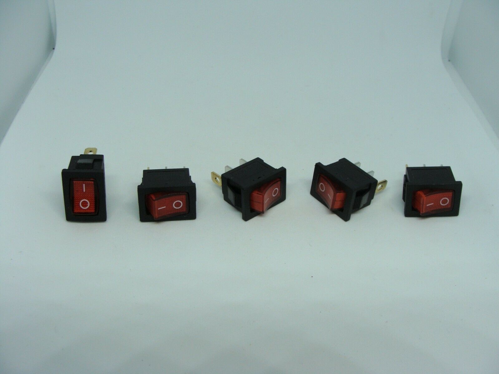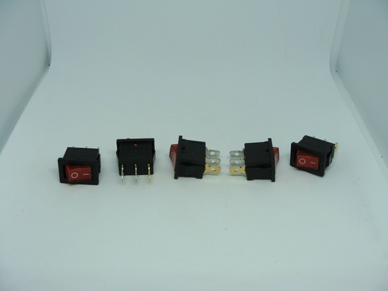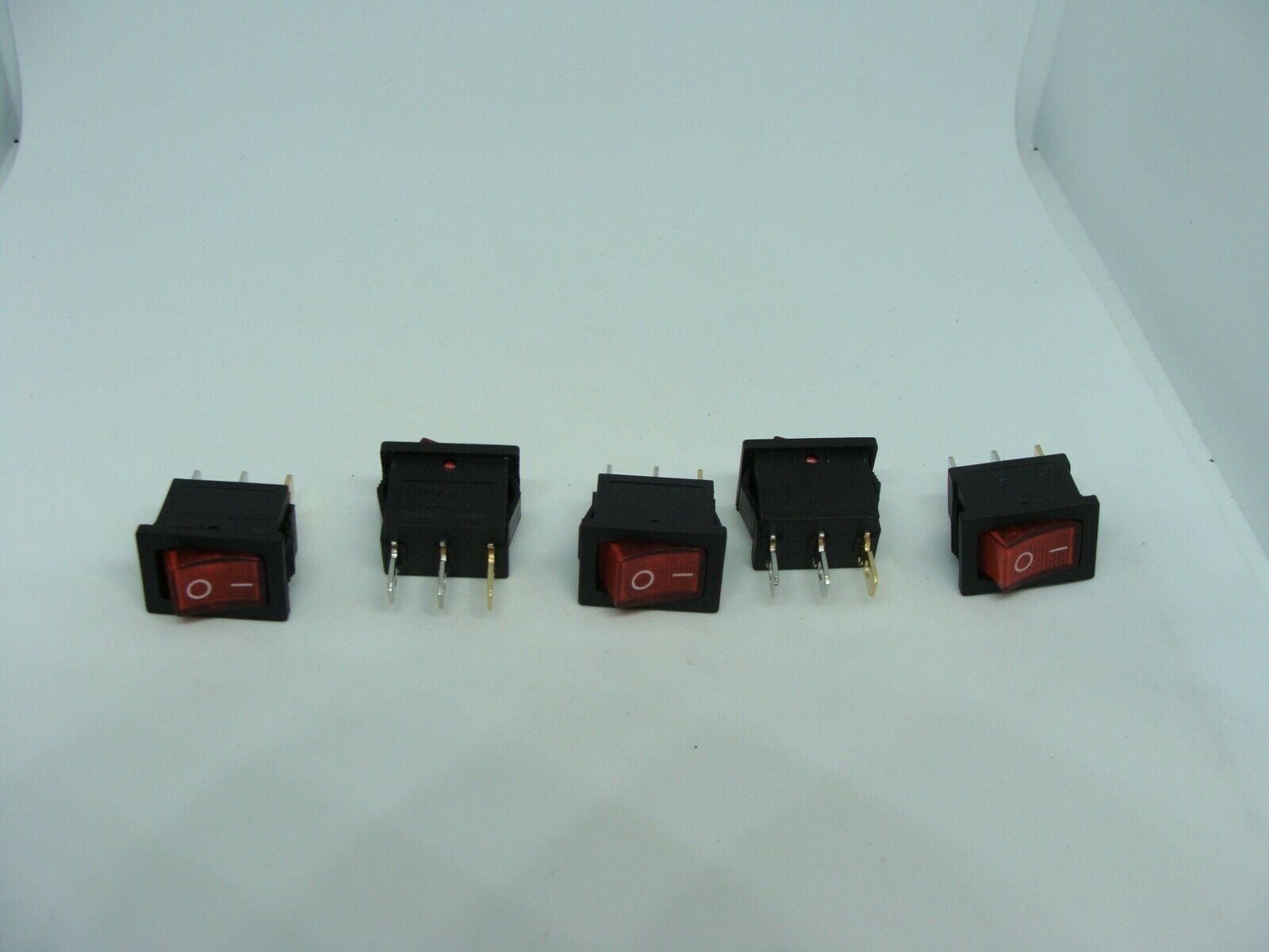1 x Pack of 5, KCD1-1 10A 250VAC T125 3-Pins Red LED Light Rocker Button Switch.
