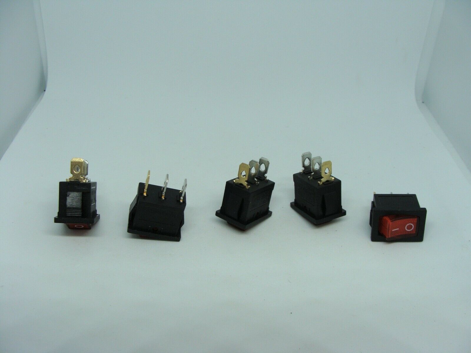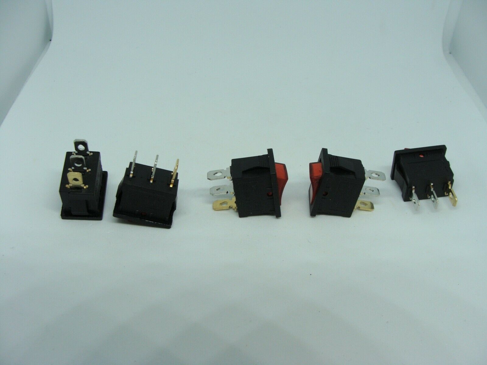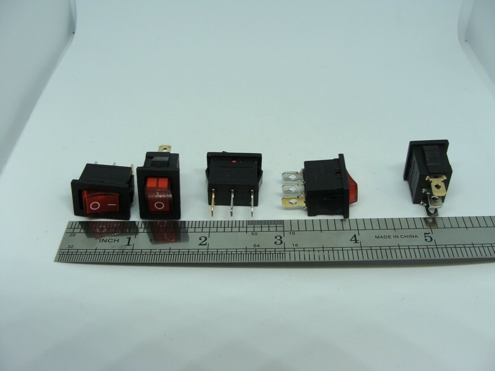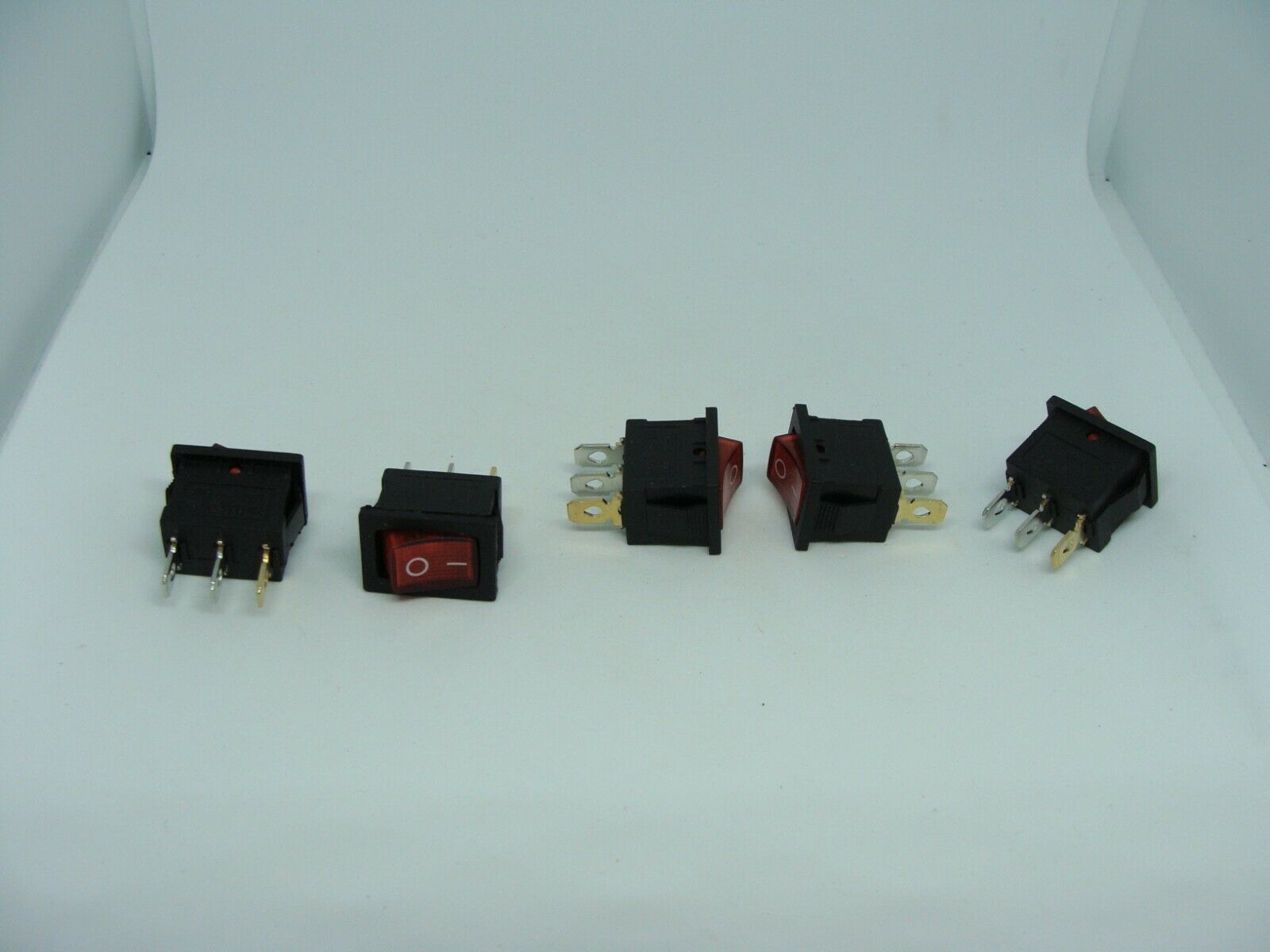 1 x Pack of 5, KCD1-1 10A 250VAC T125 3-Pins Red LED Light Rocker Button Switch.