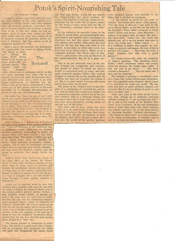 Potok continued Asher Lev's story in the book The Gift of Asher Lev.