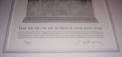 Signed Jack Nixon The Museum of Science Industry Caryatids A/P print Chicago
