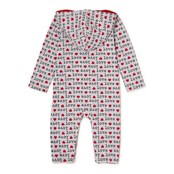 Way To Celebrate Unisex Baby 'Love Love' Hooded Long Sleeve Coverall Grey 12M