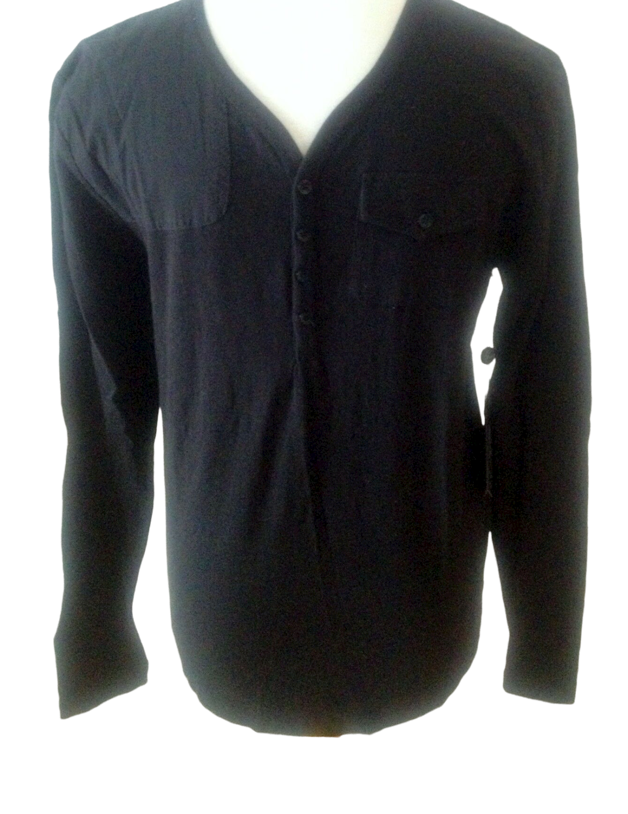 English Laundry Lange Ärmel Schwarz Knopfverschluss T-Shirt - Nwt