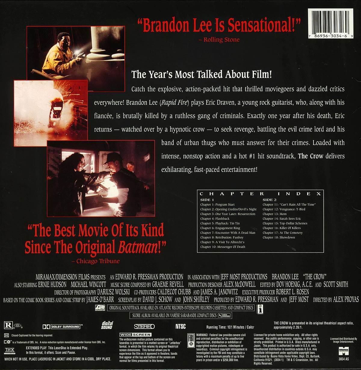 This is a previously viewed LASERDISC of the rare action fantasy classic THE CROW, staring: