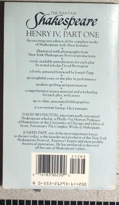HENRY IV, Part One by William Shakespeare (1988) Bantam paperback