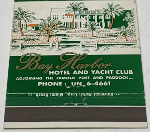 Front Strike Matchbook Cover Bay Harbor Hotel Miami Beach,Fl gmg unstruck