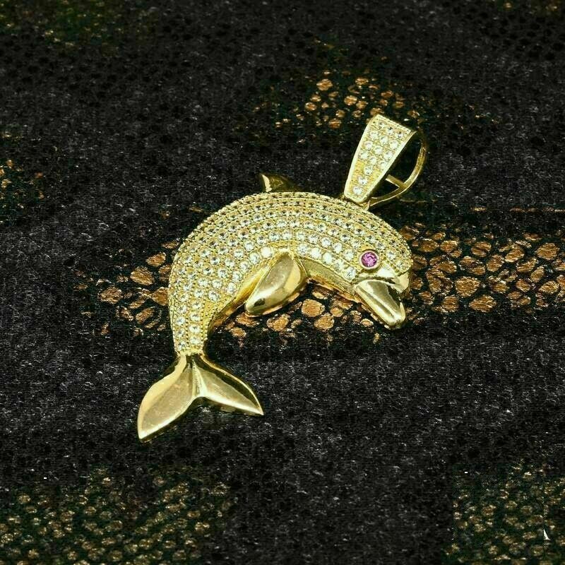 1.20Ct Round Cut VVS1 Diamond Ocean Dolphin Pendant 14K Yellow Gold Finish