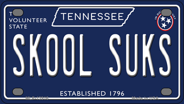 Skool Suks Tennessee Blue Novelty Mini Metal License Plate