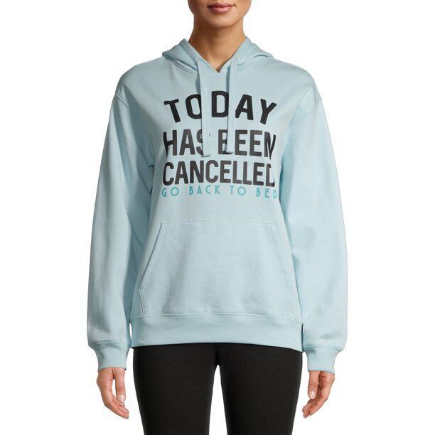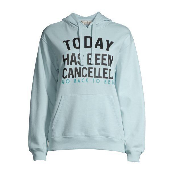 Wound Up Juniors 'Today Cancelled' Graphic Hoodie Pullover Fleece Blue Sz M(7-9)