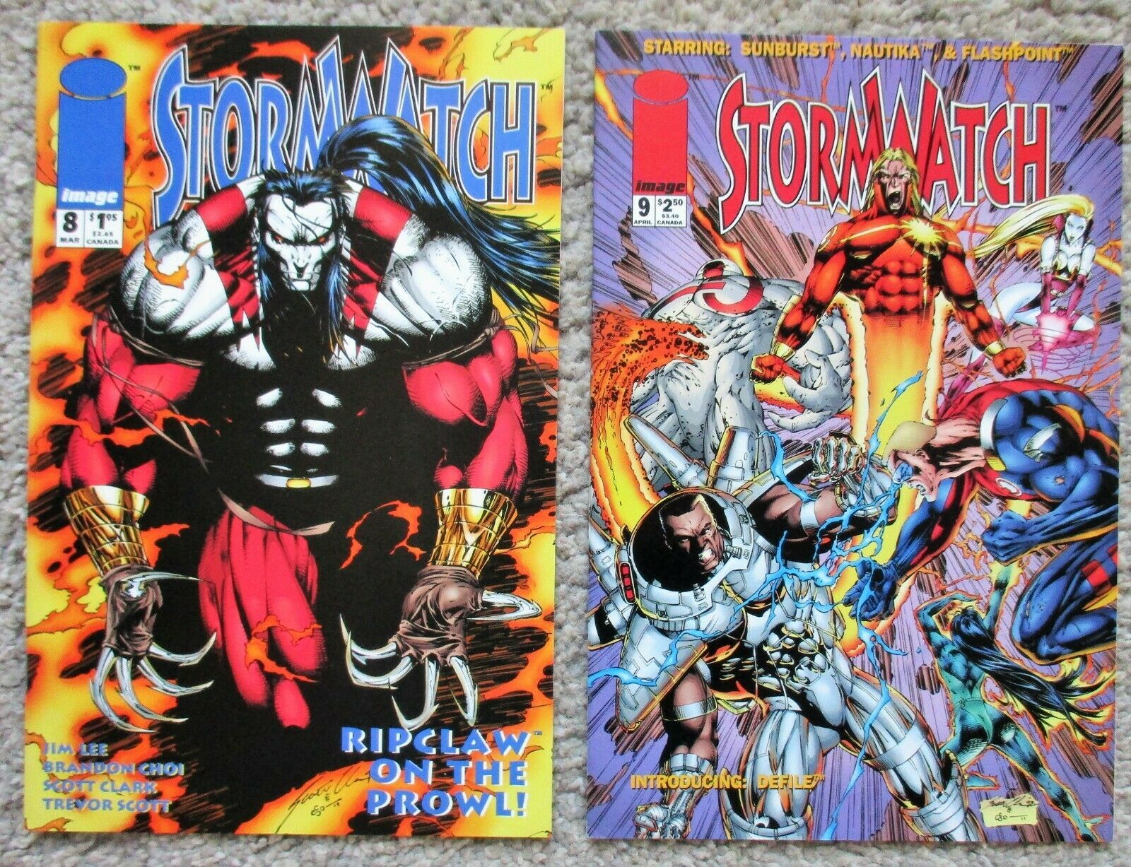 #8 (March 1994) Guest-starring Ripclaw. Story by Brandon Choi, Jim Lee and H.K. Proger. Art by Scott Clark, Jim Lee and Trevor Scott. The Native American hero from Cyber Force, Ripclaw, must team-up with StormWatch to save the life of a potential. Includes a pin-up of Battalion, Hellstrike and Ripclaw by Scott Clark and Trevor Scott. 32 pages, FC. Cover price $1.95.