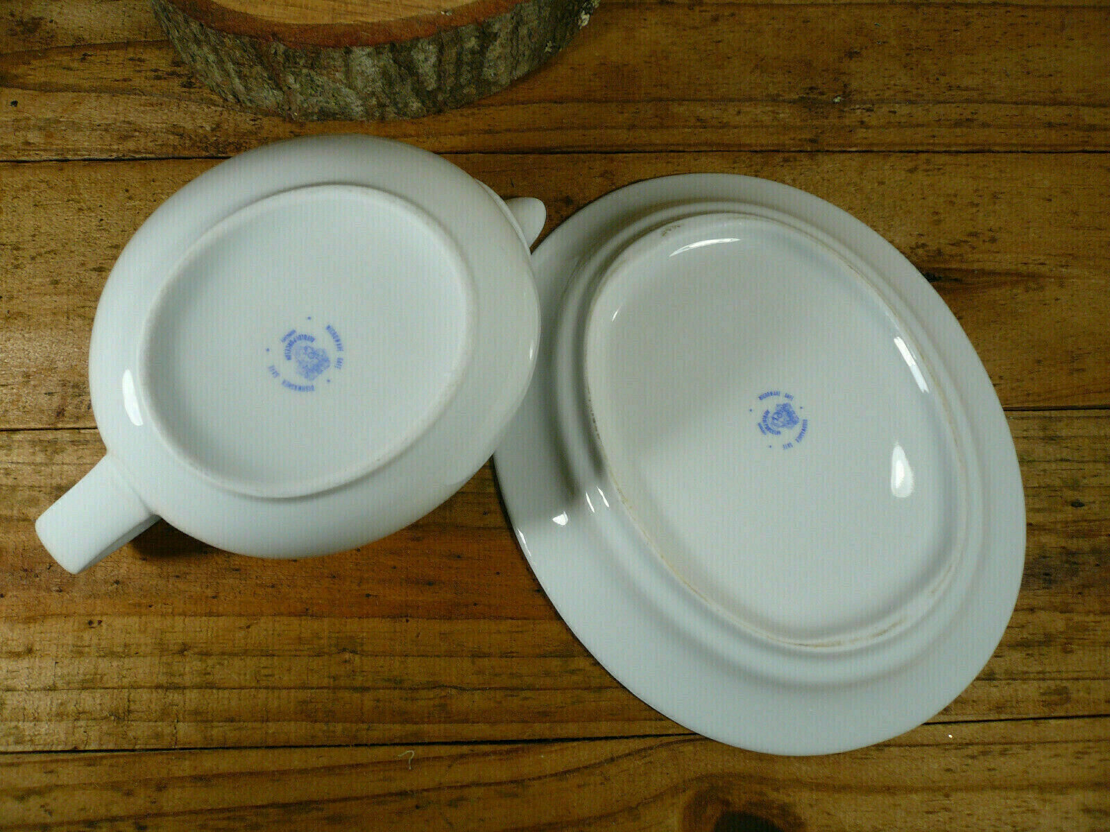 Alfoldi 2 Cup Gravy Boat & Underplate White Porcelain China - Hungary