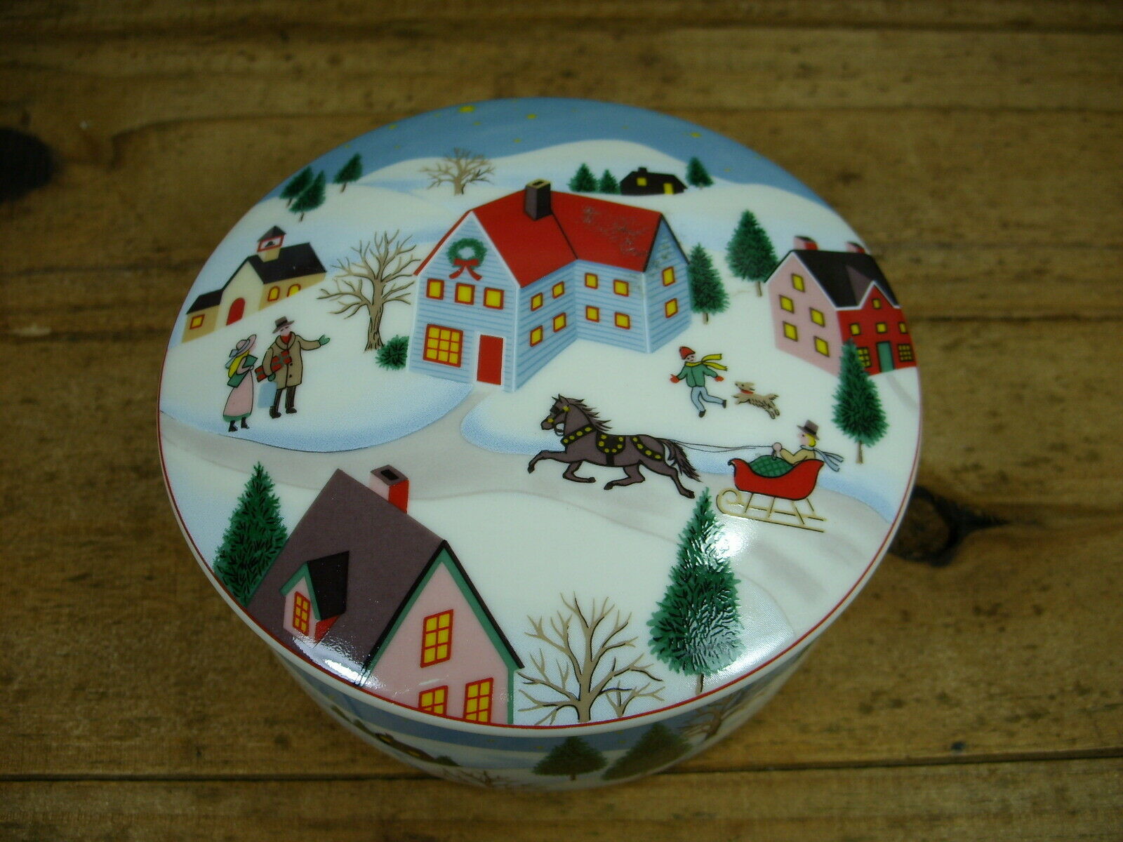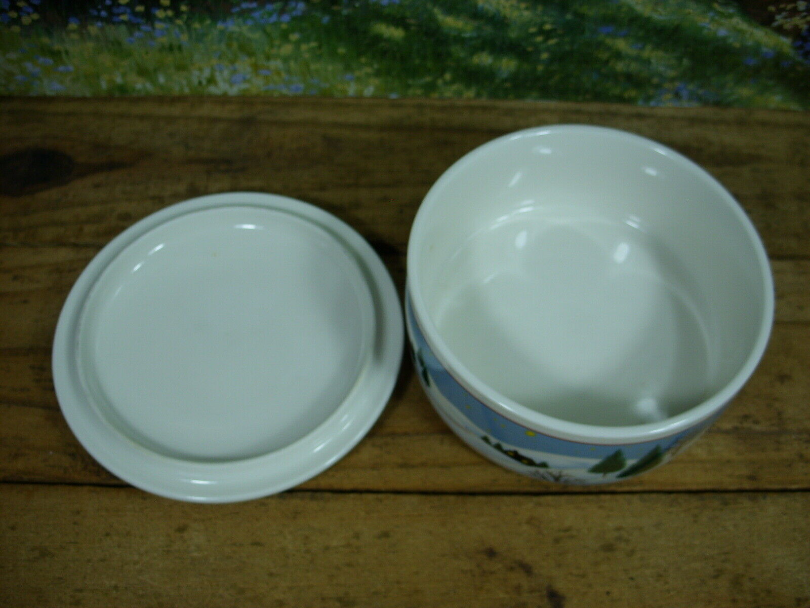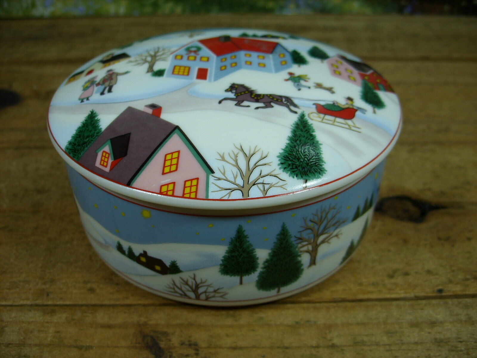 Mikasa Holiday Village Porcelain Covered Candy Dish 5"