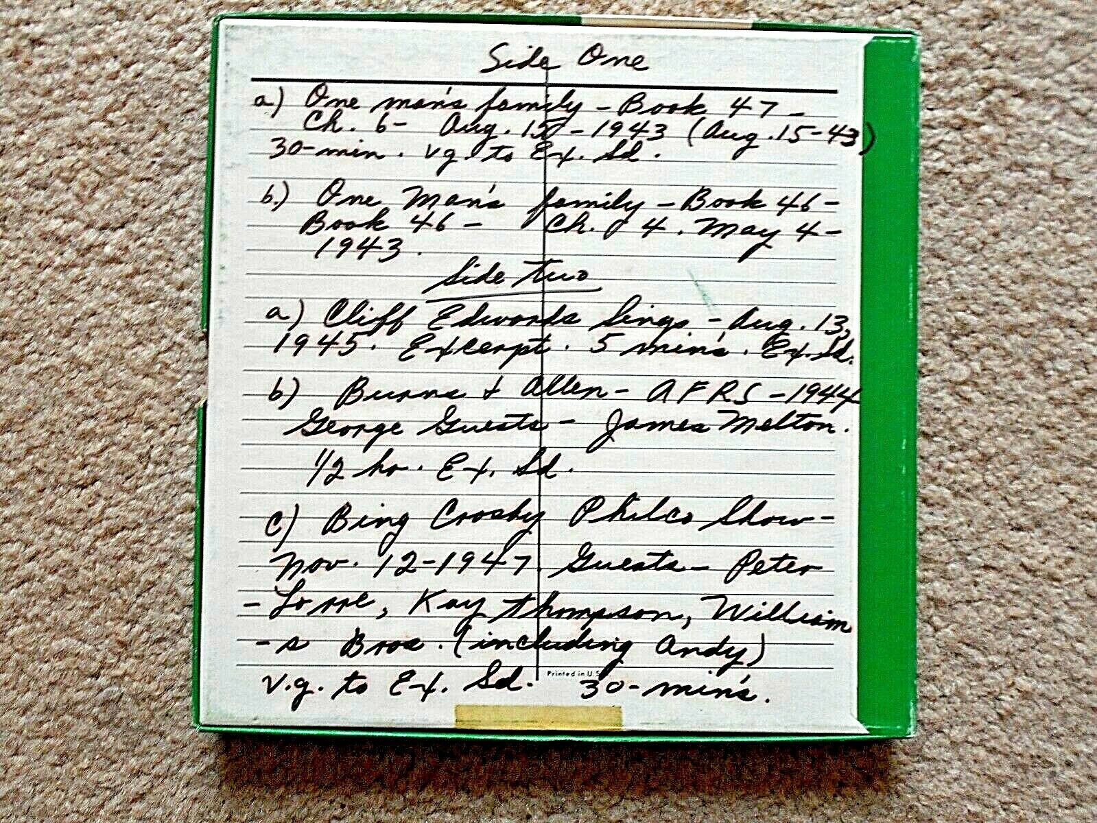 Vintage 7" Reel-Reel, Radio Shows 1940's Audio Recorded Tape