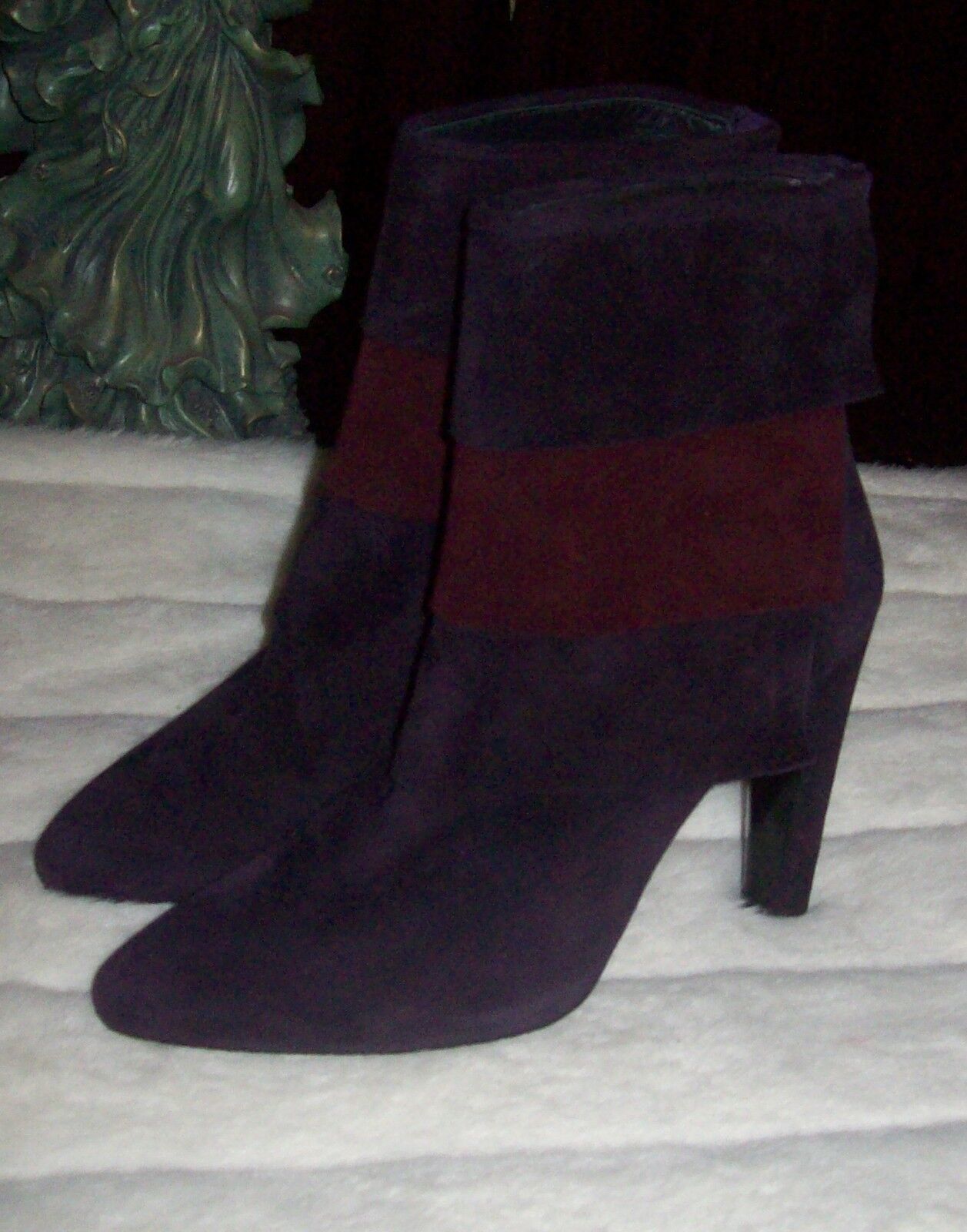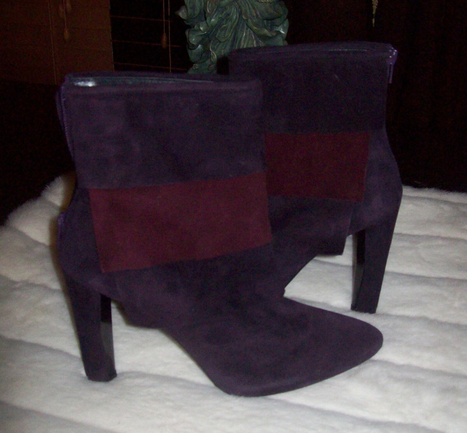 STUART WEITZMAN two tone plum suede heels ankle boots shoes , slight pointed toe, thick heel and rear zip closure.